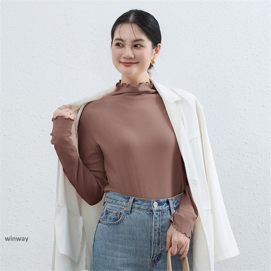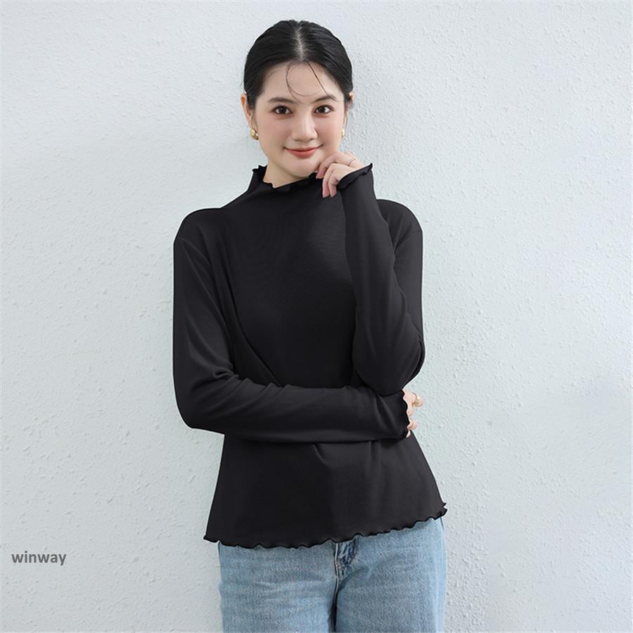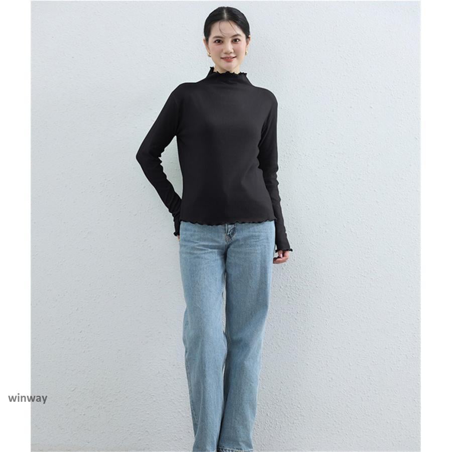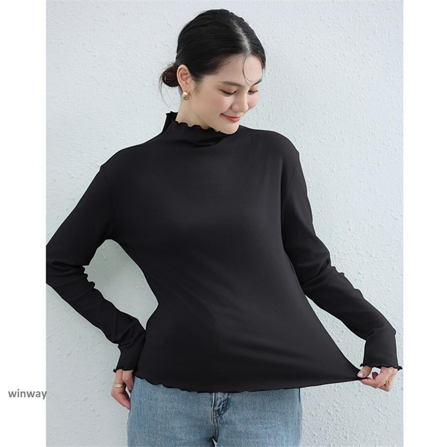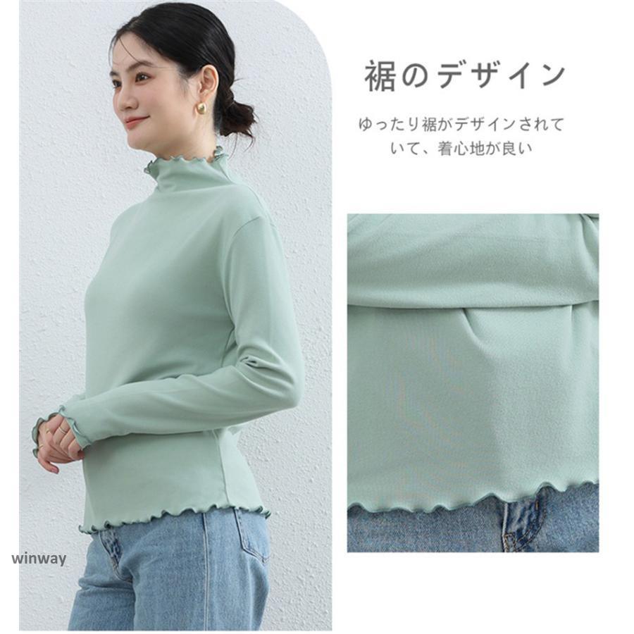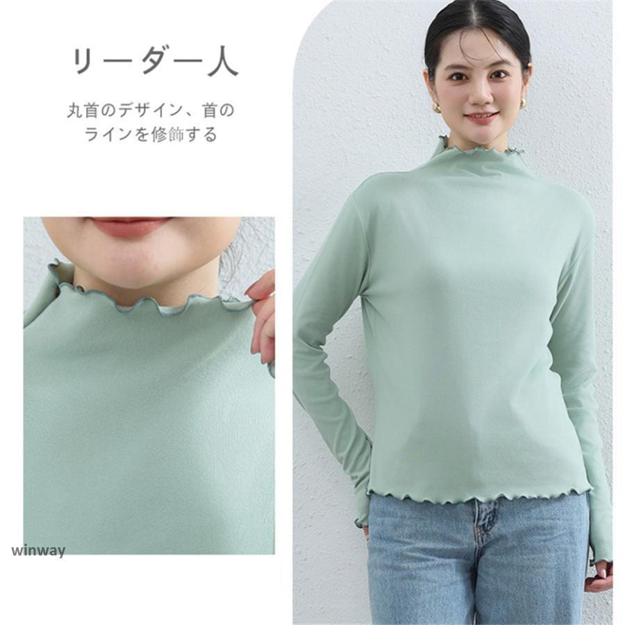 カットソー レディース 裏起毛 秋冬 トップス 長袖 シースルー ハイネック 発熱 重ね着 インナー ロングtシャツ 重ね着 かわいい 暖かい