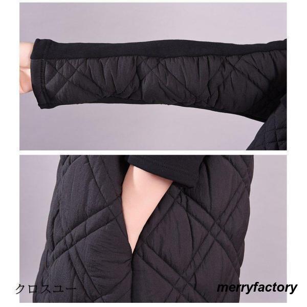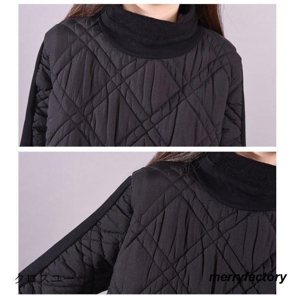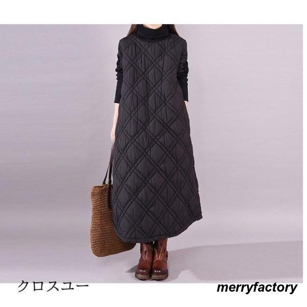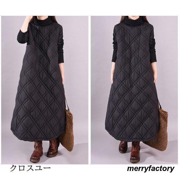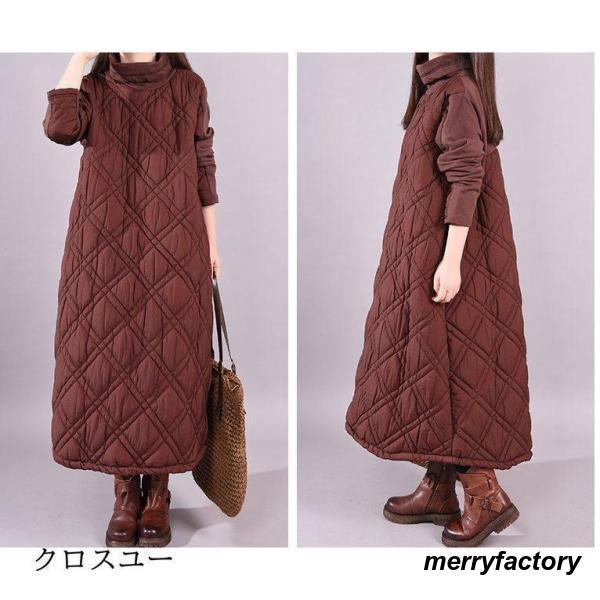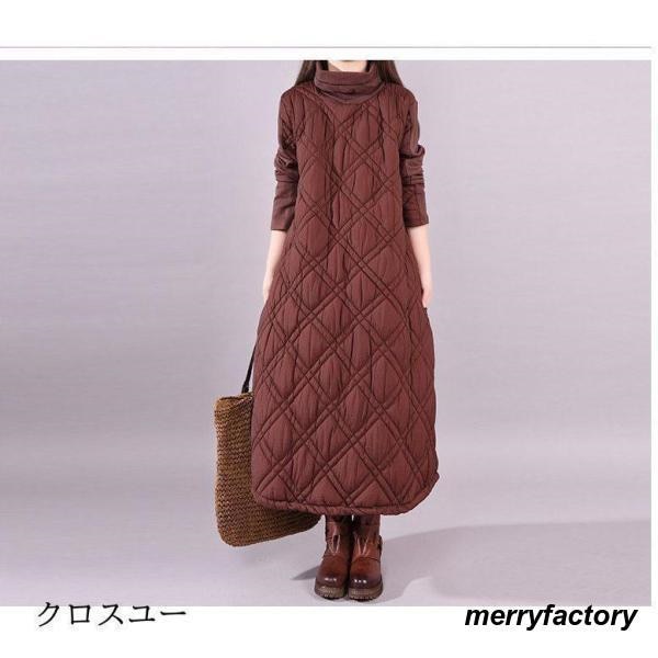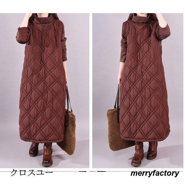 秋冬 マキシワンピース ワンピース ロングスカート チュニック ロングワンピース無地 アウター 長袖 秋 冬 Aライン 暖かい 中綿 キルティング ロング