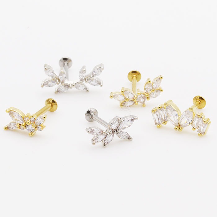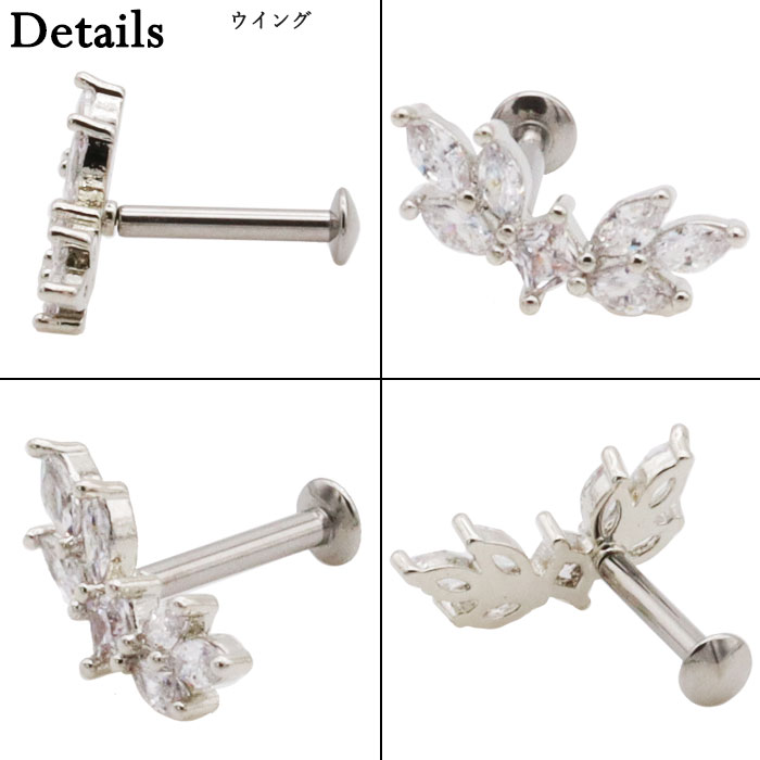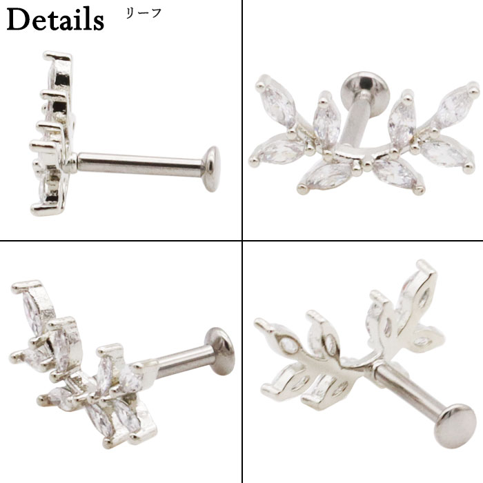 ボディピアス16G 18G ラブレットスタッド ジュエル マーキース ハート ウイング 羽根 リーフ 葉 ヴァイン 蔓 プッシュ ワンタッチ ヘリックス