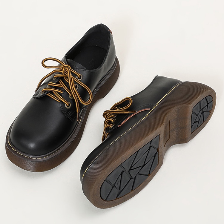 厚底 レースアップシューズ レディース 靴 本革 厚底パンプス パンプス 4センチヒール 美脚 歩きやすい ラウンドトゥ シューズ 厚底靴 マニッシュシューズ 痛くない 22.5cm 23.0cm 2