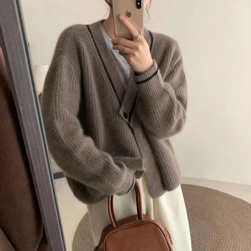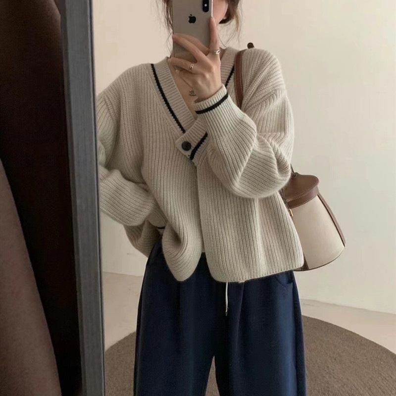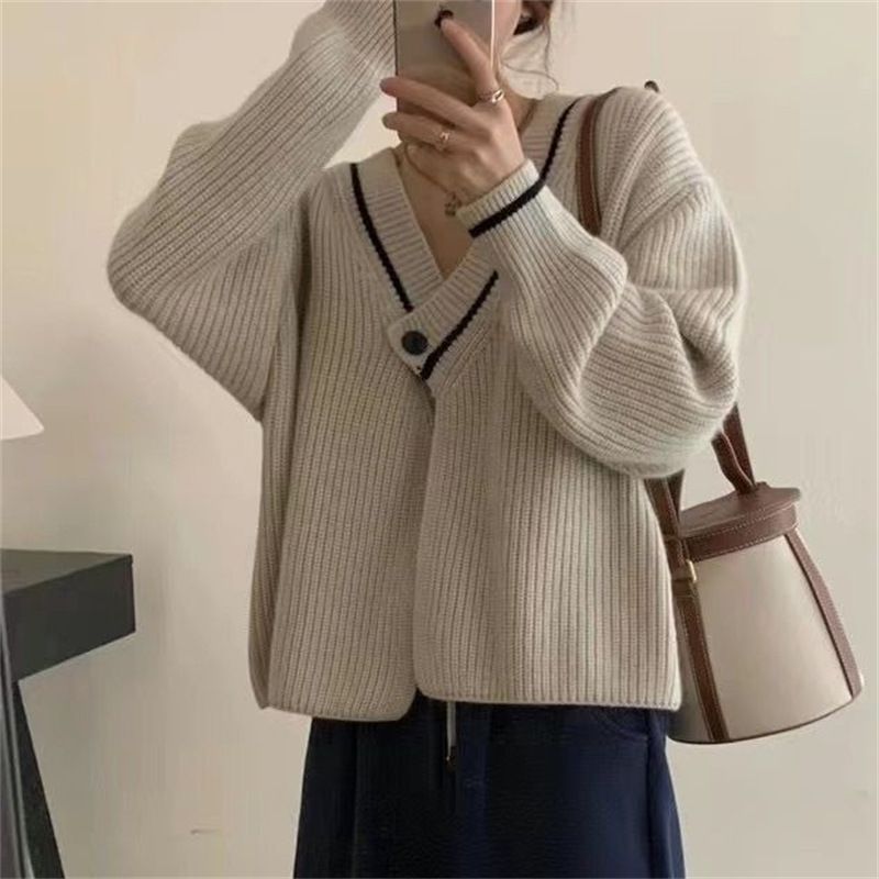 ニットカーディガン 新作セーターコート女レトロ秋冬けだるい風優しいシックなニットカーディガンv襟トップス女 百掛け 着痩せ メガ割 カーディガン