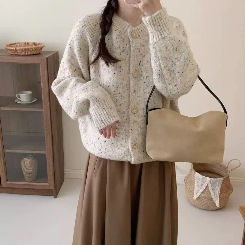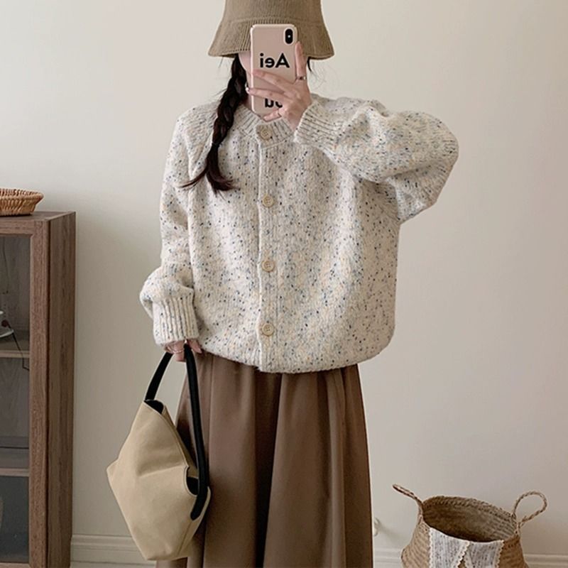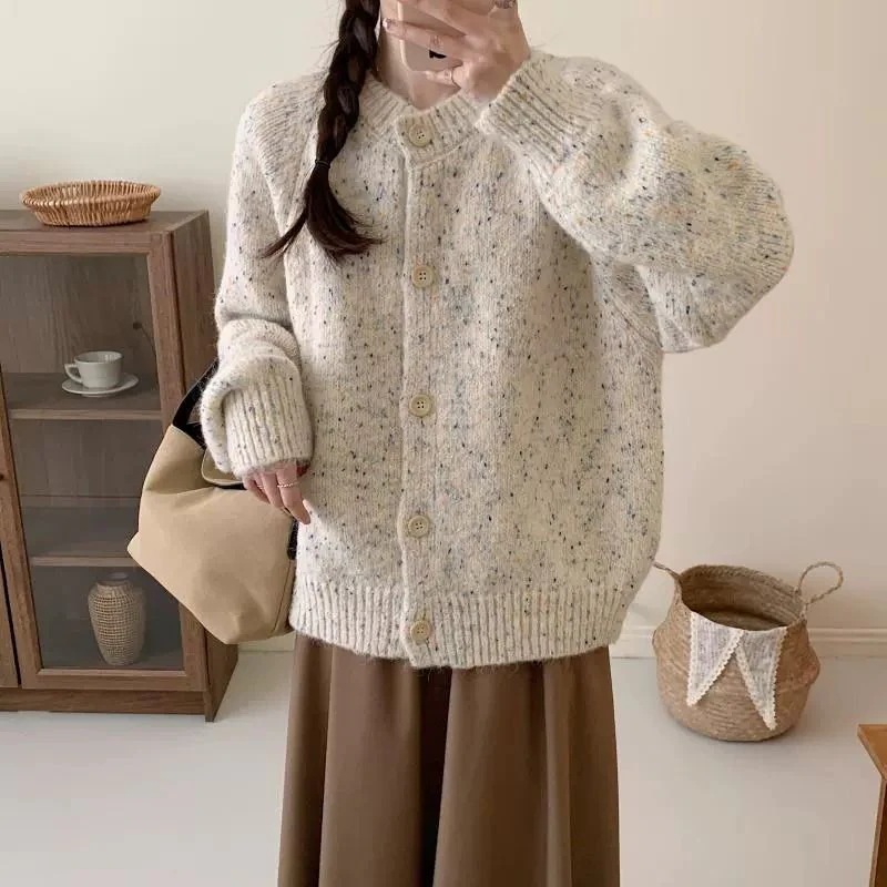 ニットカーディガン けだるい風に彩られたセーターカーディガン女2024秋新作フラワー糸モチモチ丸首ニットコート 百掛け 着痩せ メガ割 カーディガン