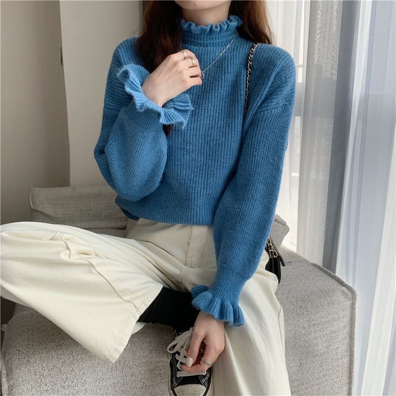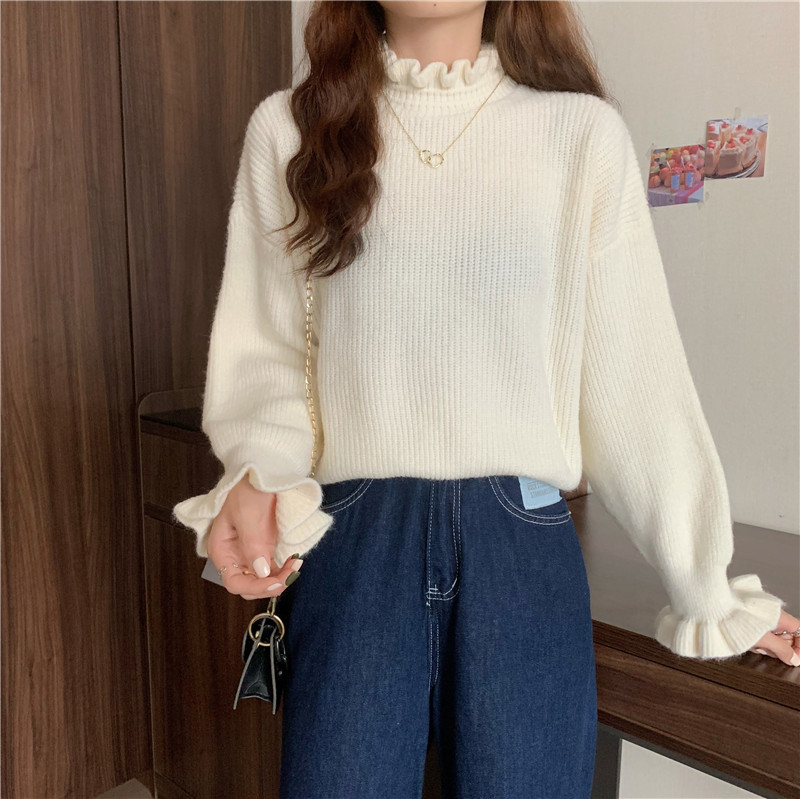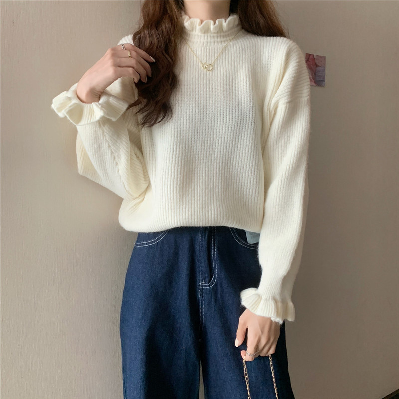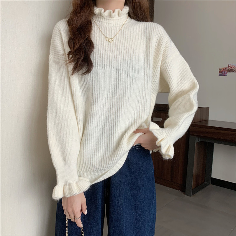 ハイネック カットソー 長袖 袖長め 3色 レディース きれいめ タートルネック モックネック オフネック 厚手シンプル かわいい おしゃれ