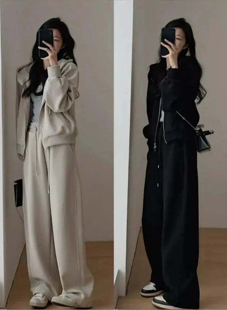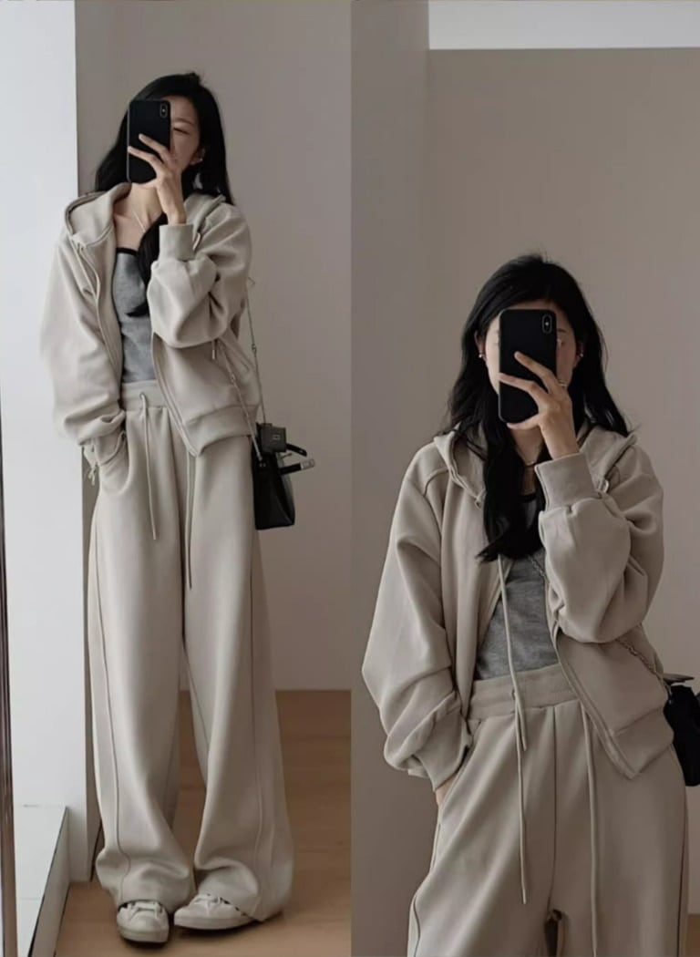 トップス+ズボン 大きいサイズパーカー 150kg スウェット ア ップ 長袖フード付きアウター無地 スウェットパンツ韓国ファッション レディーストレーニ
