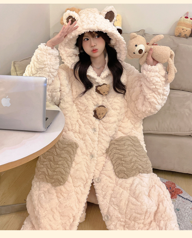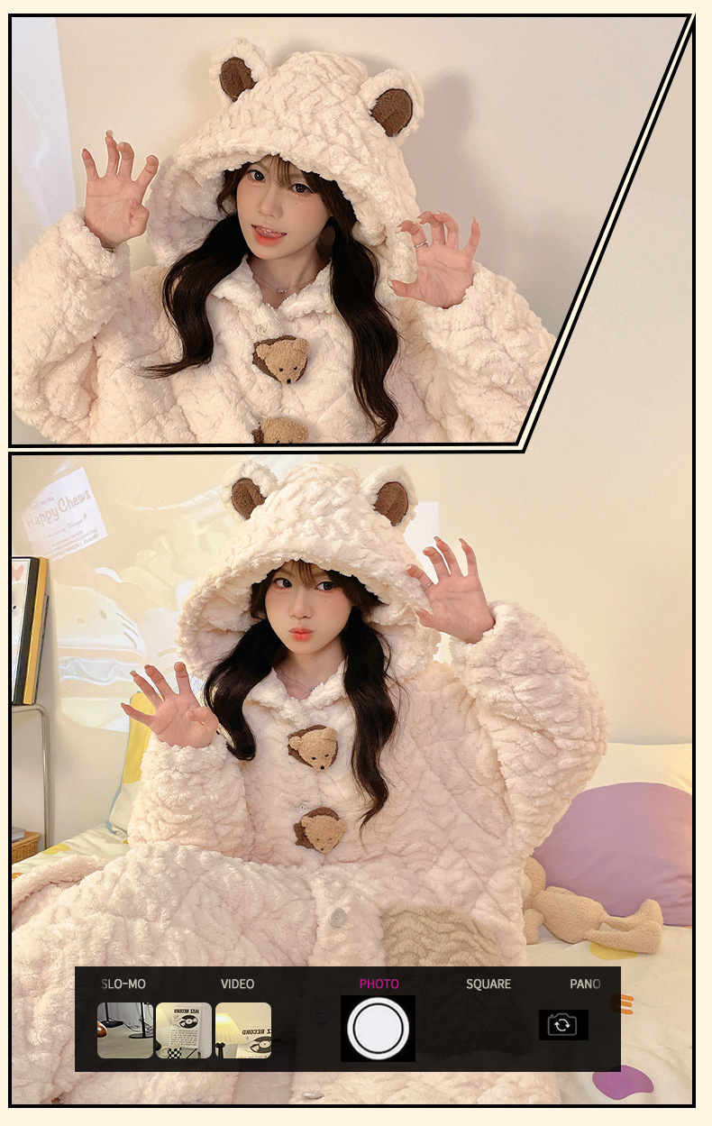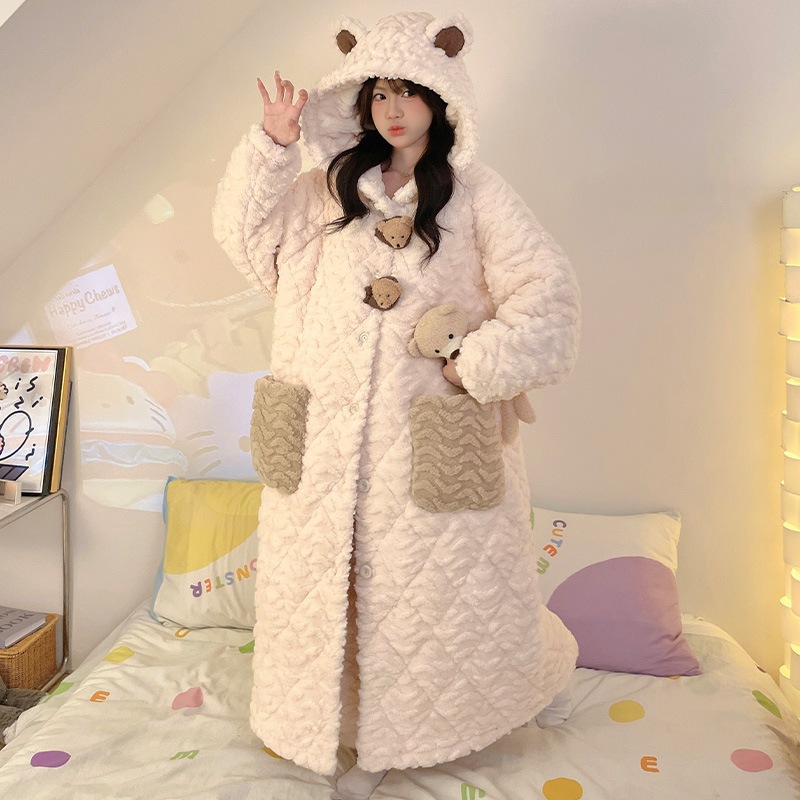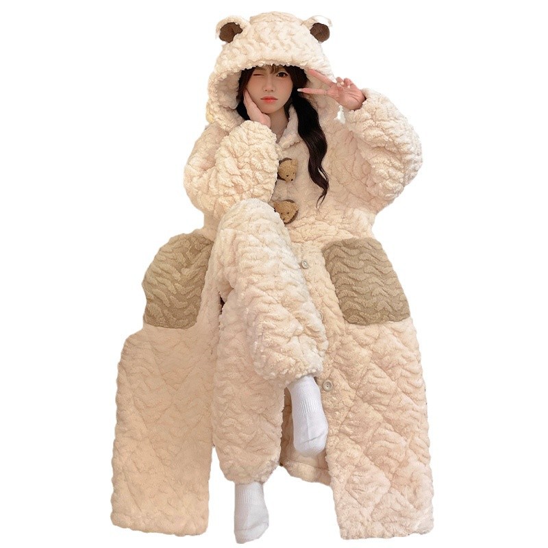 人気ルームウェア セットアップ 冬 パジャマ女性珊瑚絨毯ガウンプラス絨毯厚手保温部屋着セット 可愛い パジャマ レディース 秋冬 韓国 部屋着