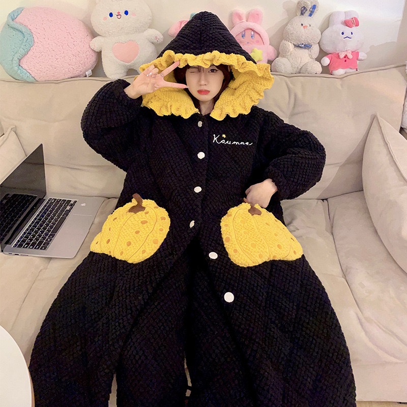 人気ルームウェア セットアップ 冬 スリーパー冬タイプ女性厚手連帽綿パジャマ保温ロングタイプ部屋着セット 可愛い パジャマ レディース 秋冬 韓国 部屋着