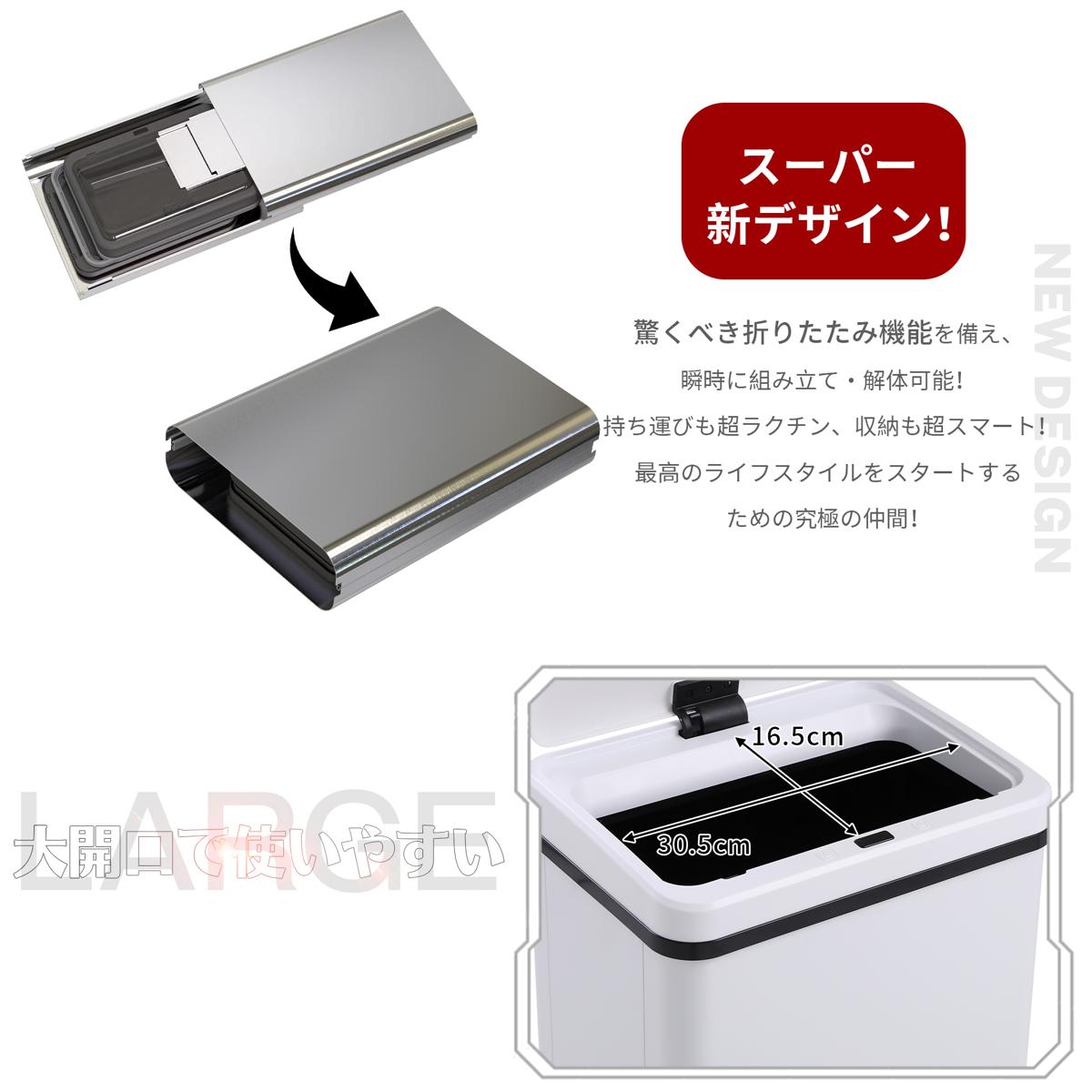 ゴミ箱 自動開閉 おしゃれ 45L袋対応 大容量 50L ふた付き 高機能センサー スリム キッチン リビング 屋外 縦型 大型 ステンレス製 ダストボックス ごみ箱 資源ゴミ China White