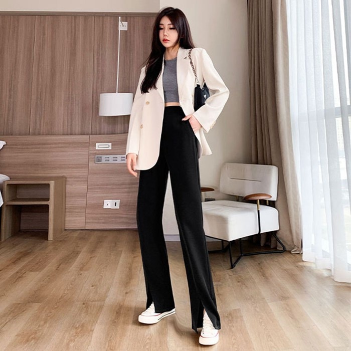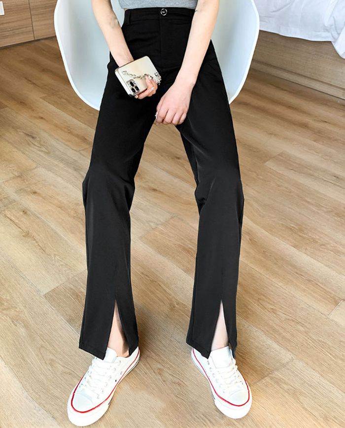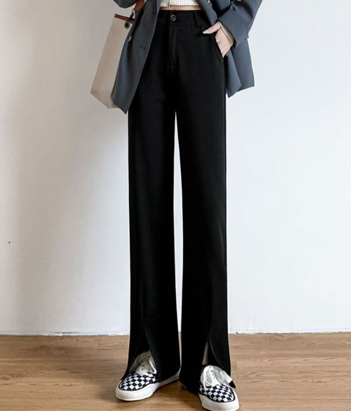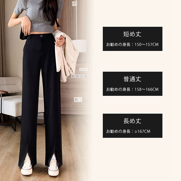 低身長 高身長 大きいサイズ有り テーパードパンツ スリットパンツ ピンタックパンツ センタープレス ストレッチ ボトムス ロング丈 レディーススラックス 無地 シンプル ウエストゴム オフィス