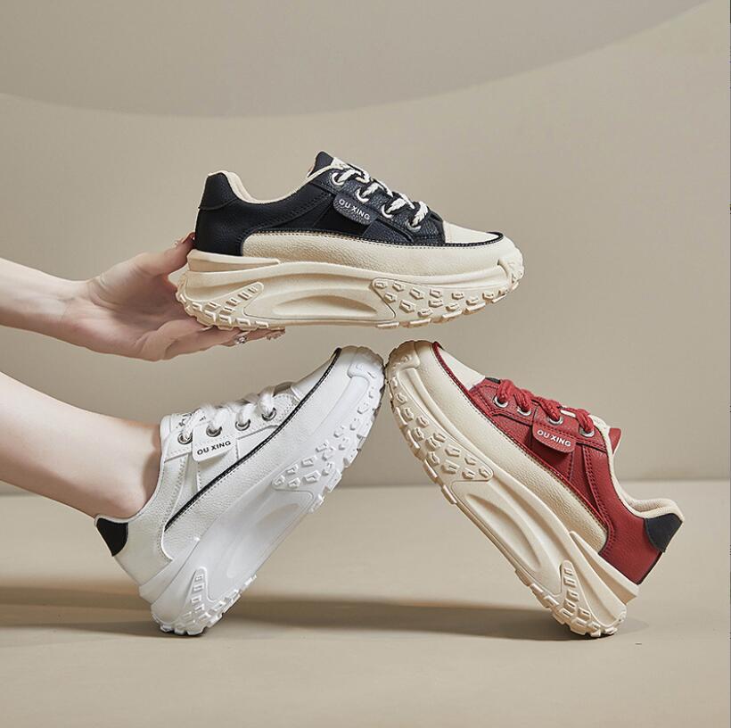 [4色] 2024 秋 可愛い スニーカー 厚底 通学 学生 脚長効果 美脚見え レディース シューズ 靴 シンプル カジュアル 痛くない靴 4.5cm