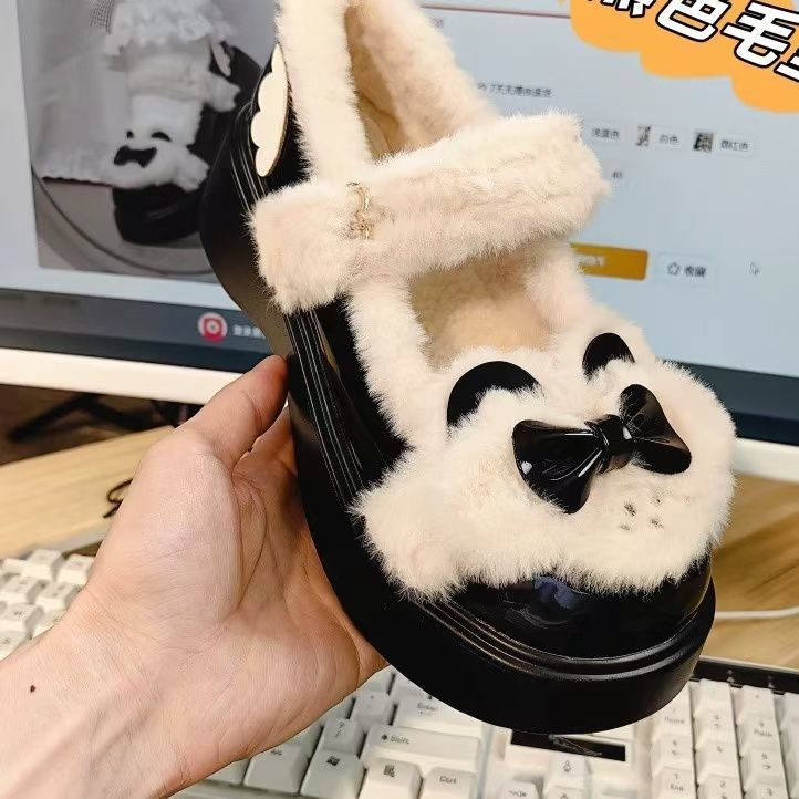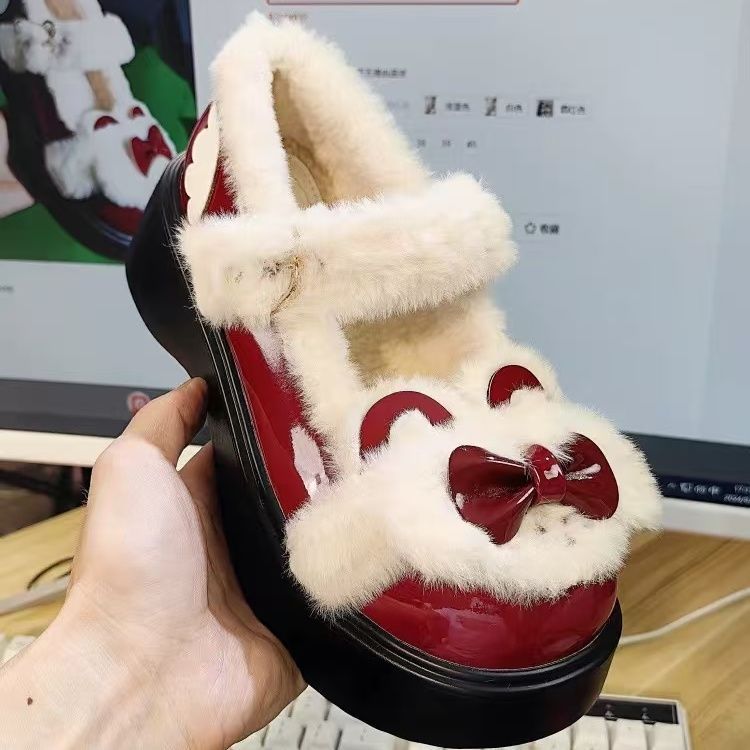 スニーカー 冬のかわいい保温靴厚底綿靴lo靴ヒツジの子羊lolita靴加絨毯マーティン靴 メガ割 スポーツ