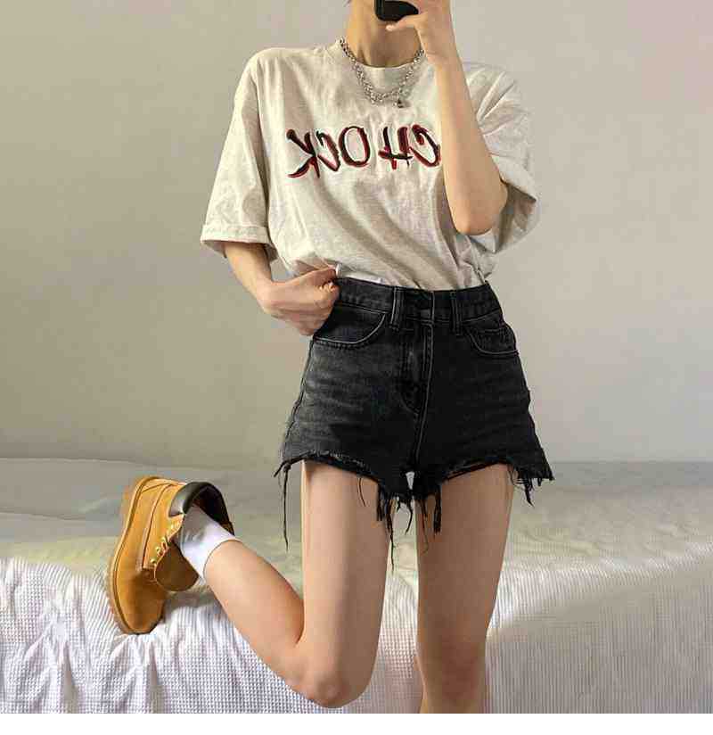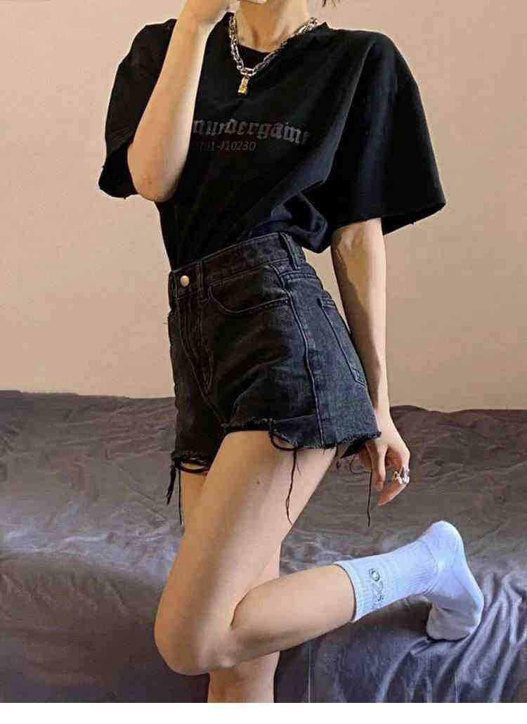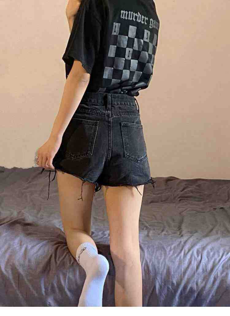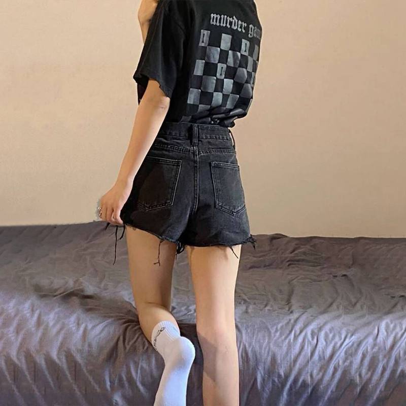脚見せショートパンツ お得なショーツ デニムパンツ レディース 夏の細いハイウエスト生エッジショートパンツ 黒の大きいサイズの細いパンツ ショート ハーフパンツ