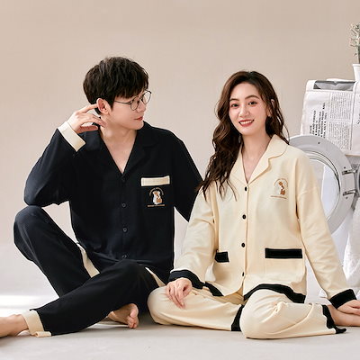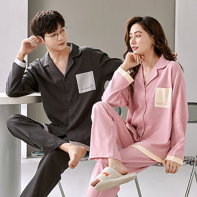パジャマ カップル 上下セット 春秋冬 前開き 長袖 綿 大きいサイズ 寝巻き ルームウェア 部屋着 お揃い レディース メンズ 単品売り パジャマ