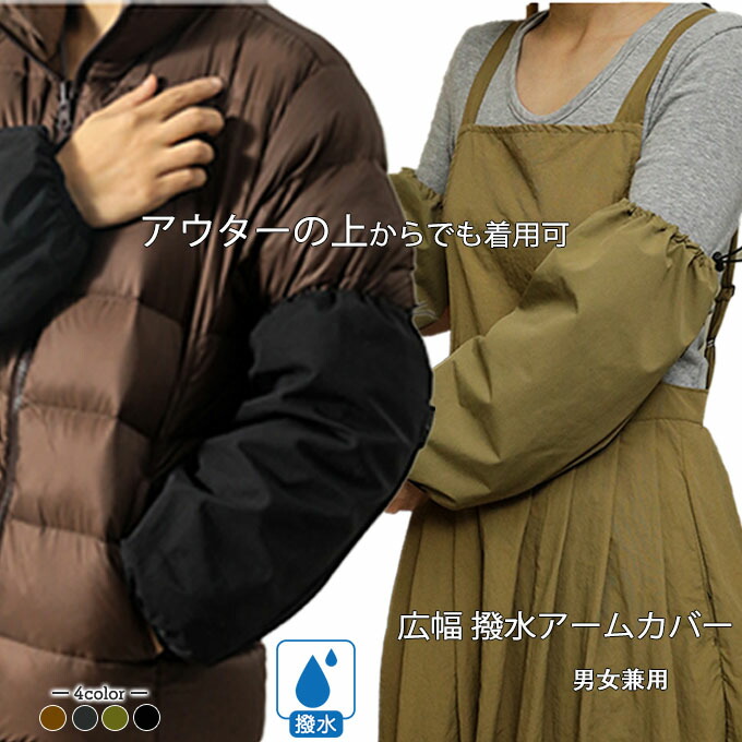広幅 撥水 アームカバー アウターの上からでも使用できる アウトドア 野外 洗車 ガーデニング 庭手入れ 大きいサイズ ロング丈 強力防水 無地 メンズ レディース 男女兼用 ユニセックス