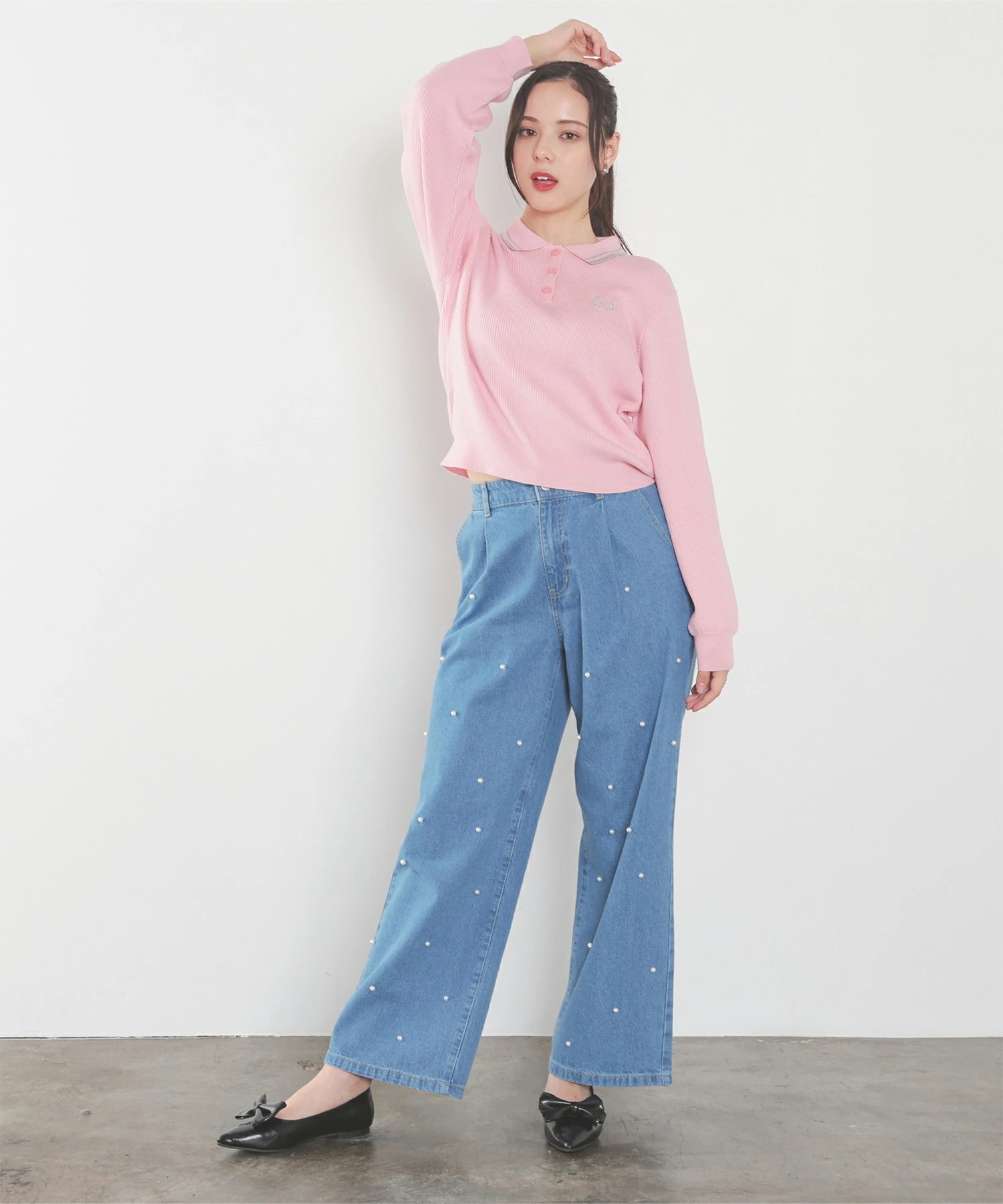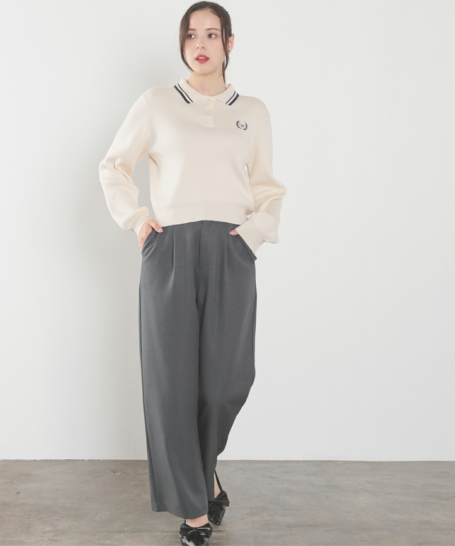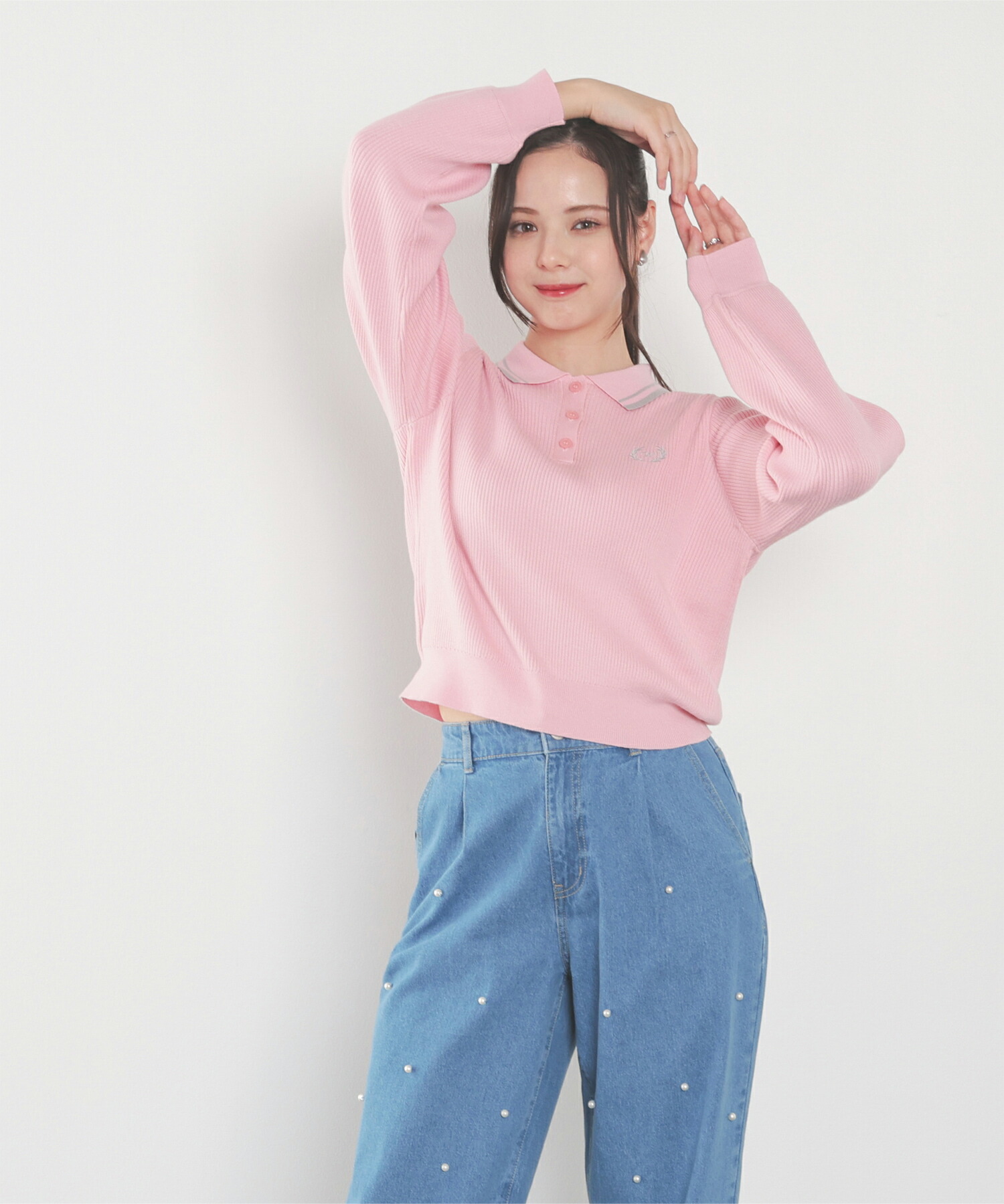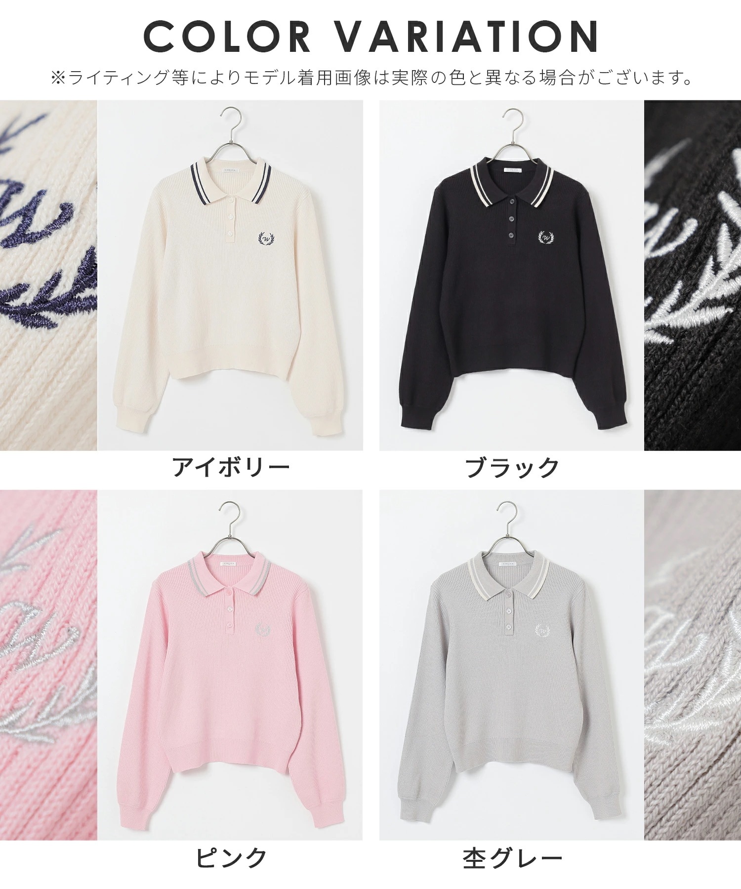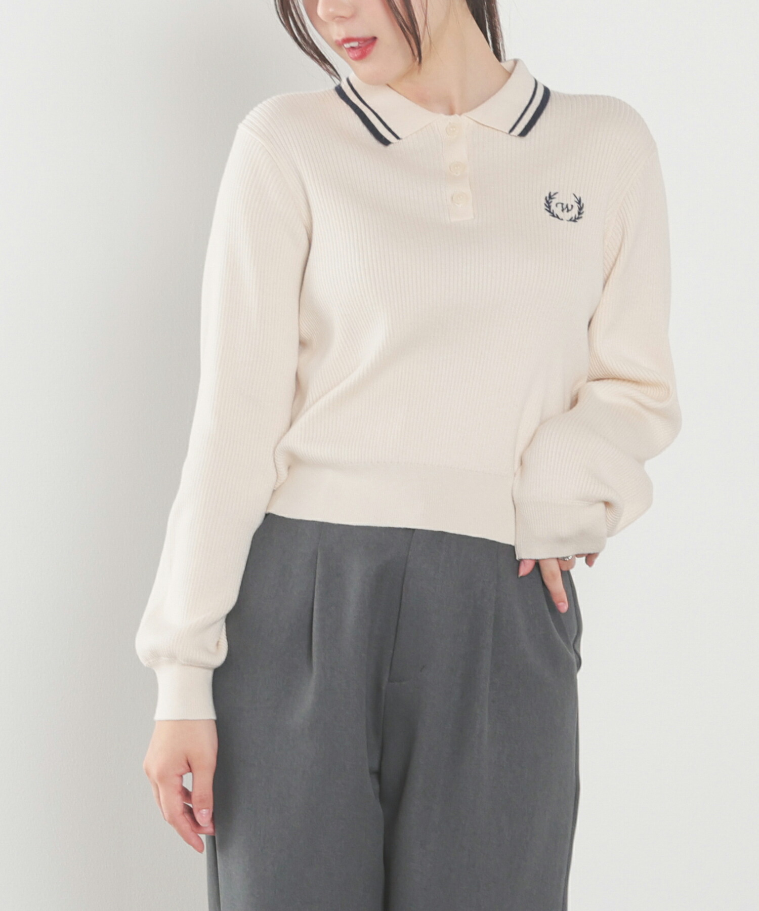 Honeys 衿付ニットトップス トップス ニット セーター 長袖 衿付 刺繍 ワンポイント ガーリー ニット
