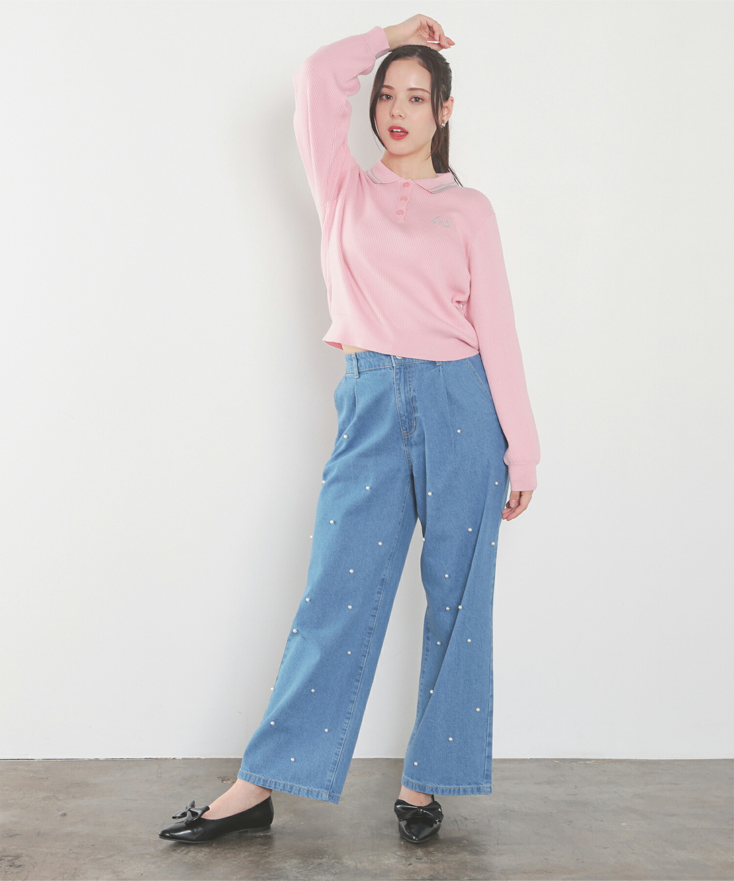 デニムパンツ ビジュー付き