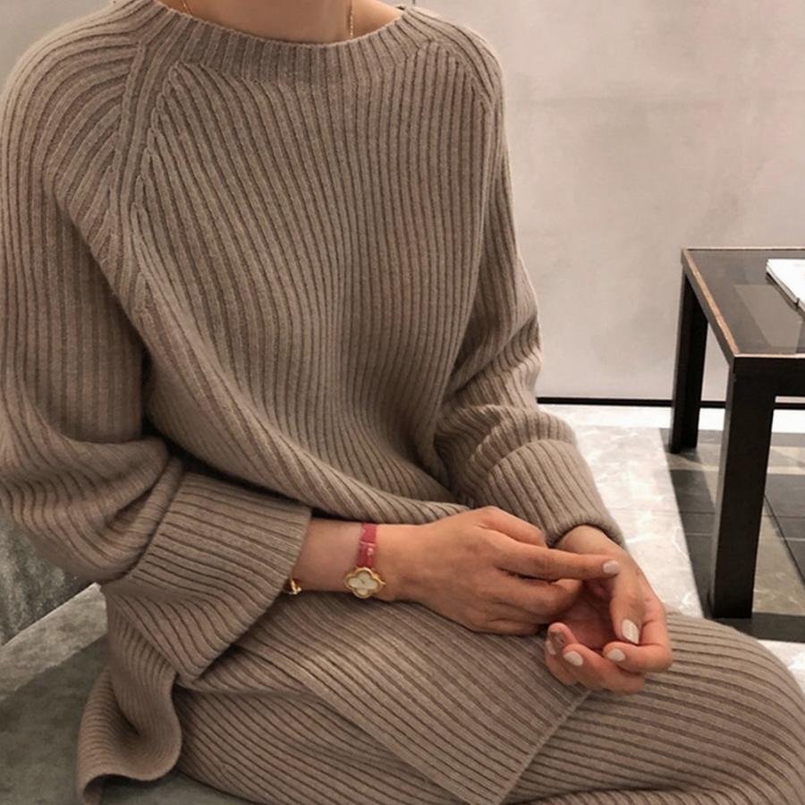 韓国ニットセットアップ レディース 秋冬 カットソー