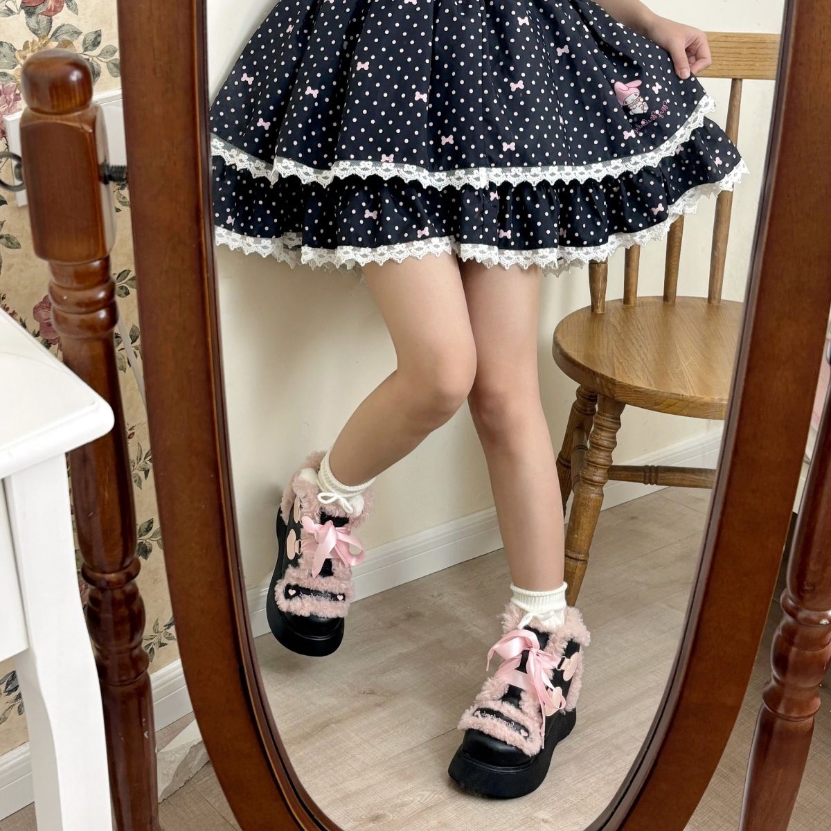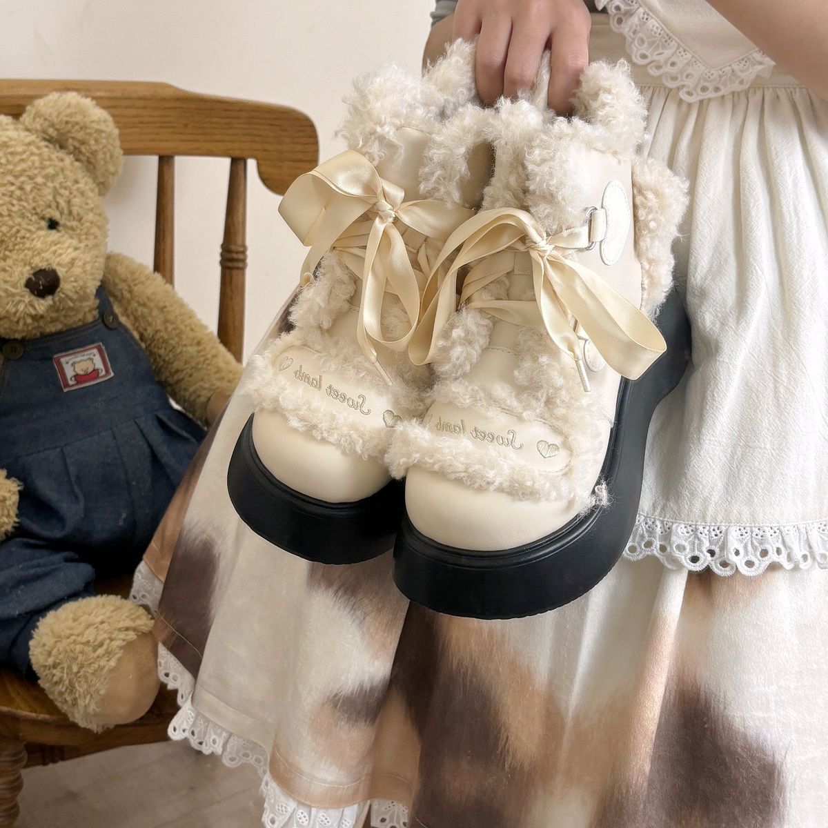 スニーカー 冬のかわいい保温靴厚底綿靴lo靴ヒツジの子羊lolita靴加絨毯マーティン靴 メガ割 スポーツ