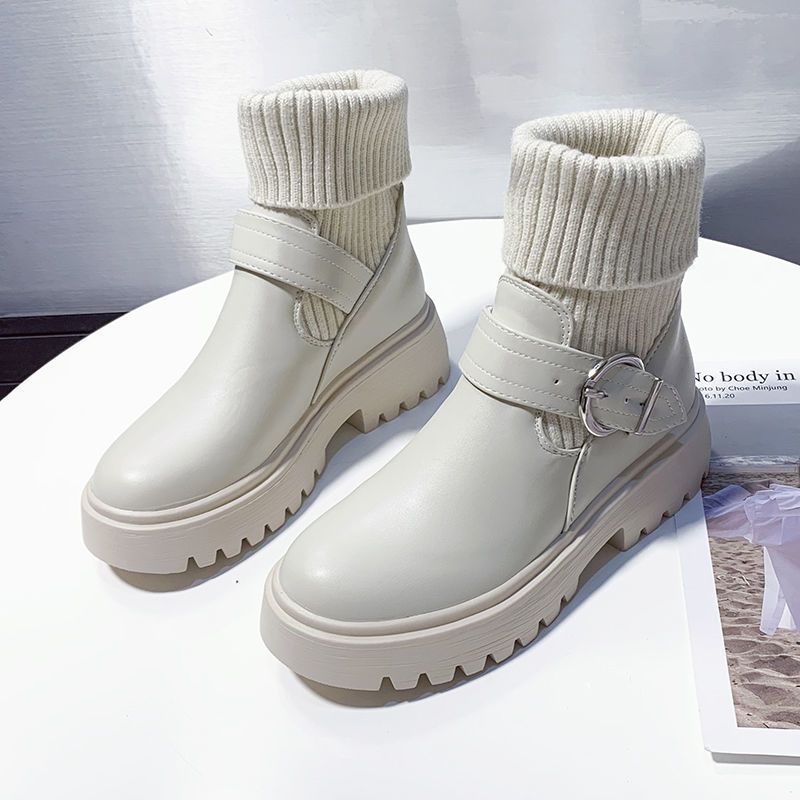 スニーカー 2025秋冬毛糸口ショートブーツ韓国版太ヒール厚底ニットショートブーツマーチンブーツ保温加絨コットンブーツ メガ割 スポーツ