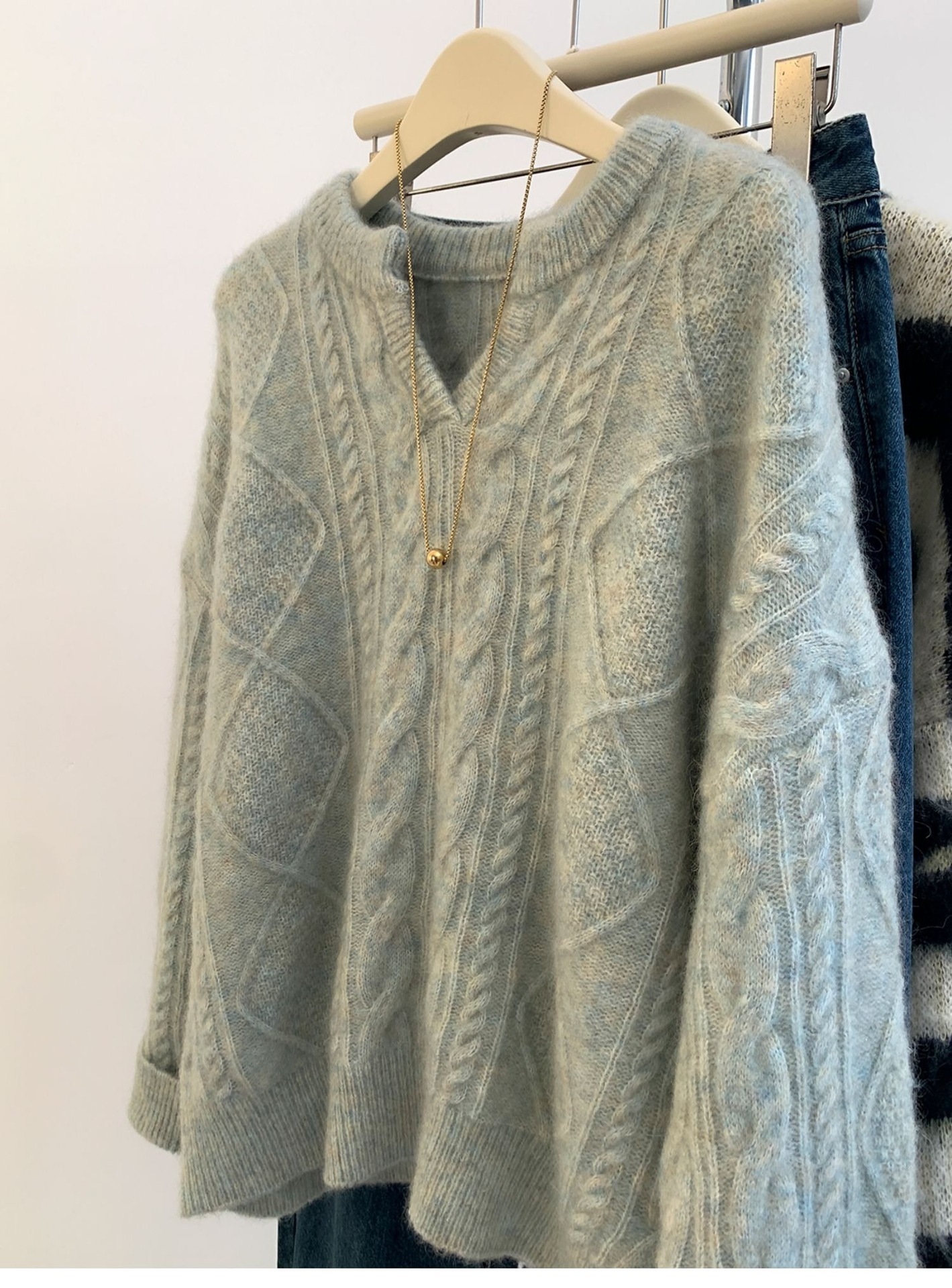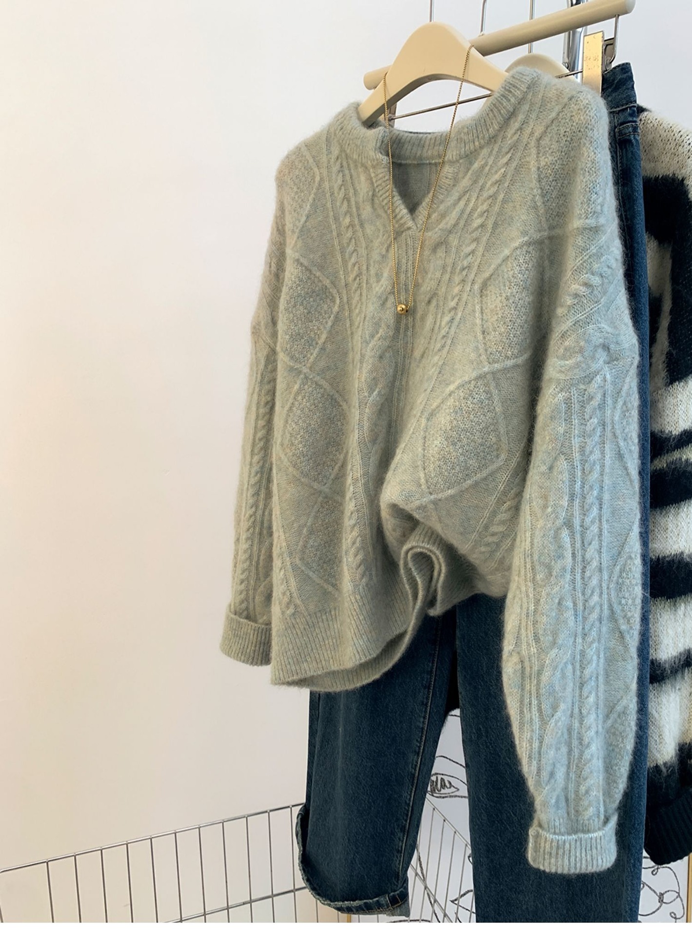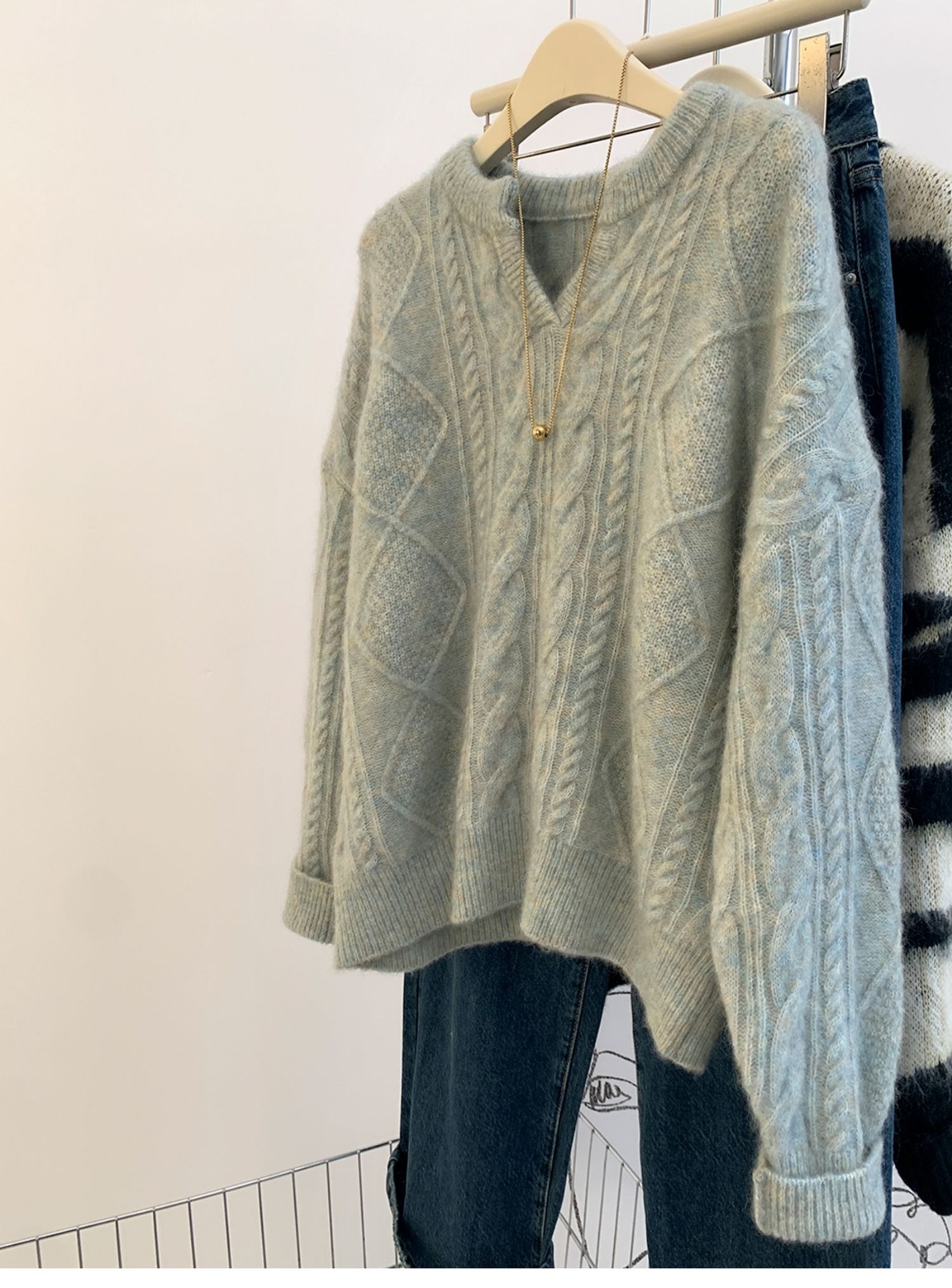 高級グレーvネックマーブルアライグマのダウンセーター女性秋冬冬厚くだるくてモチモチしたウールニット ニット