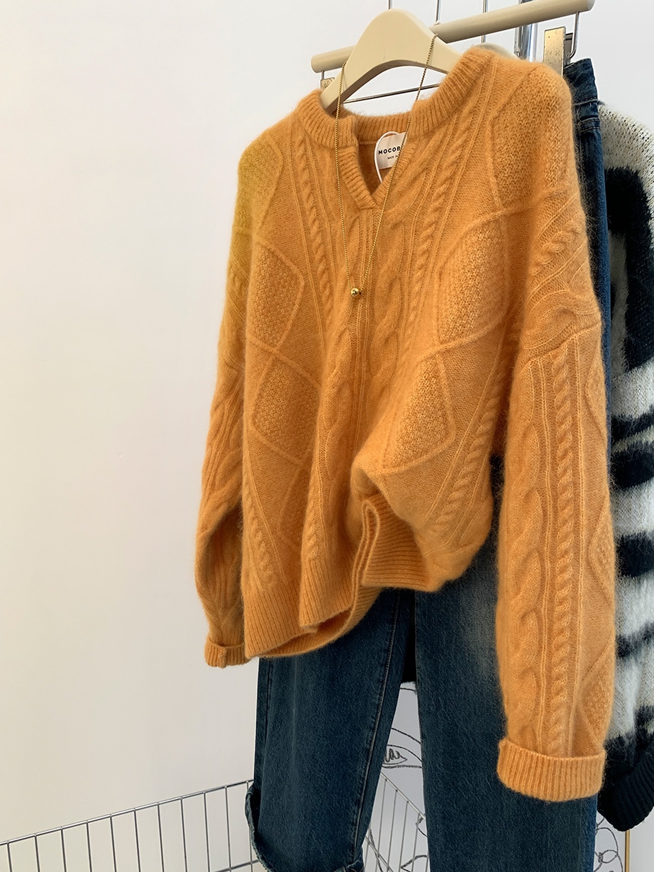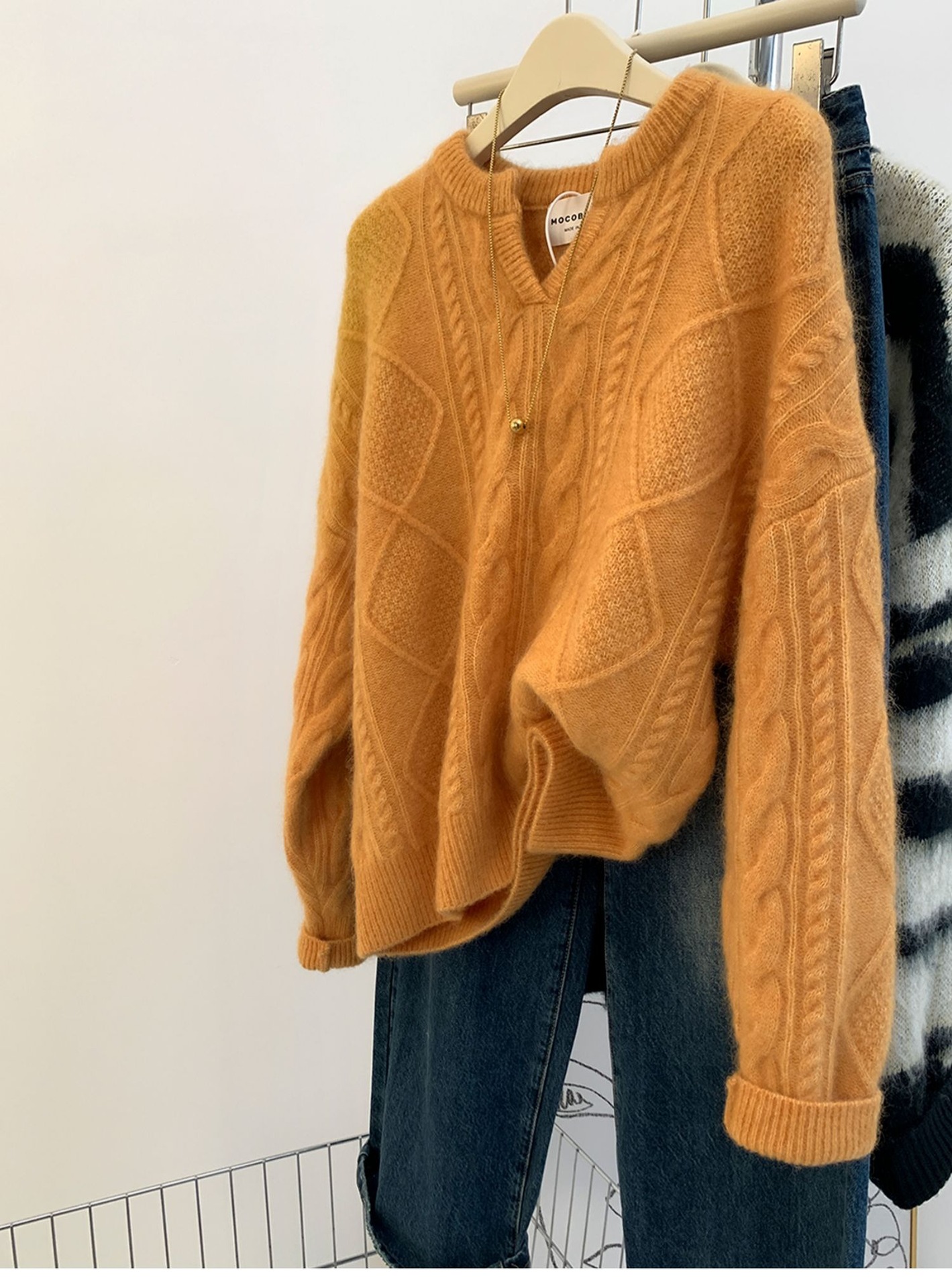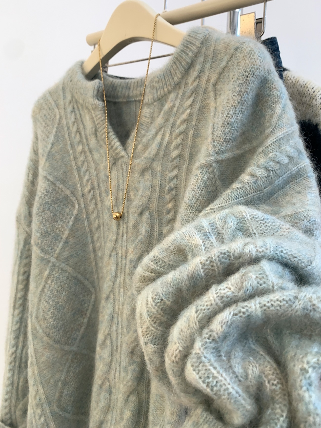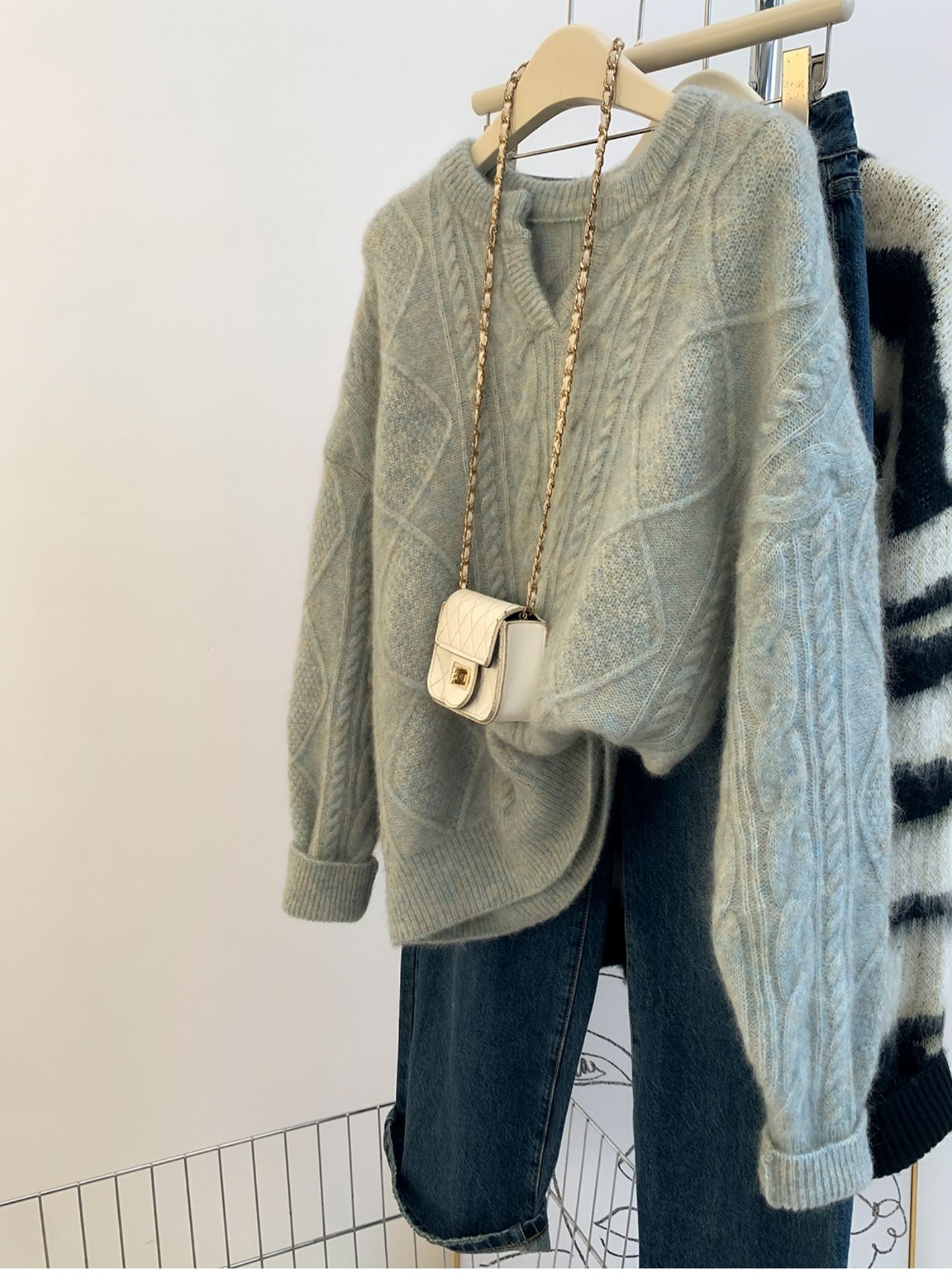 高級グレーvネックマーブルアライグマのダウンセーター女性秋冬冬厚くだるくてモチモチしたウールニット ニット