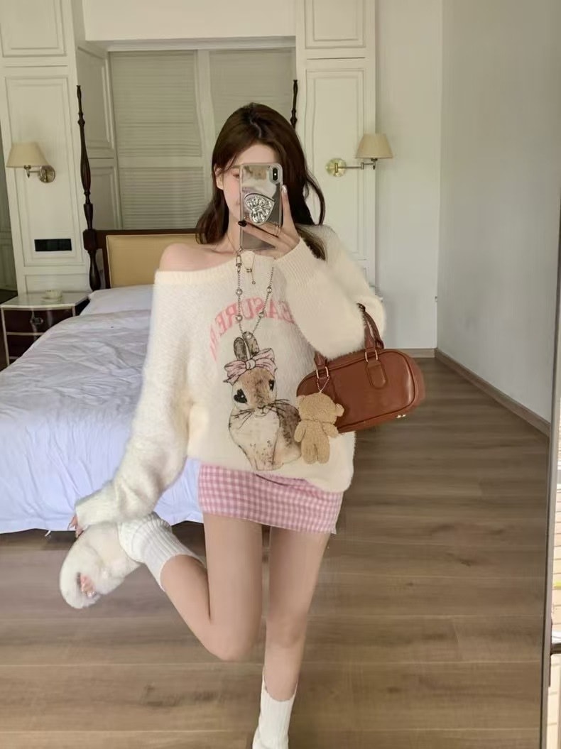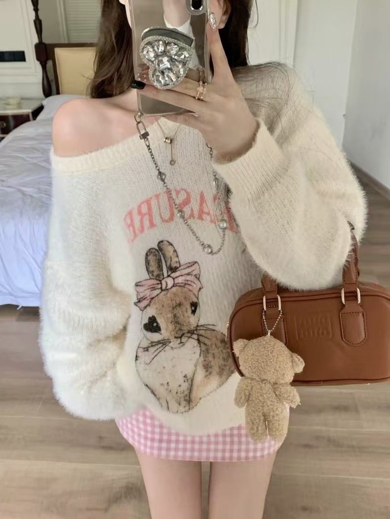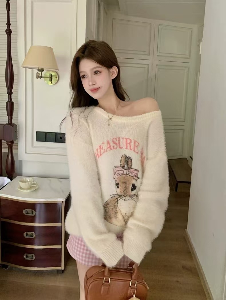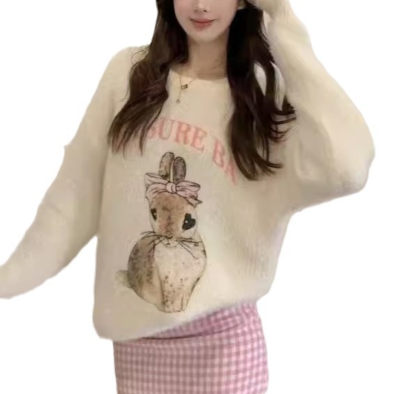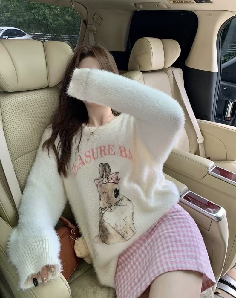 秋冬のセーターの袖の女性の柔らかいモチモチのウサギの甘いニットの上着 ニット