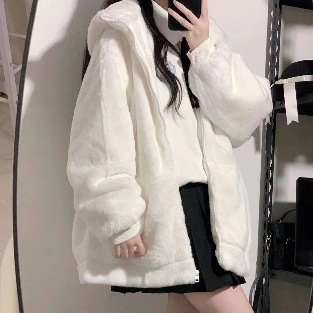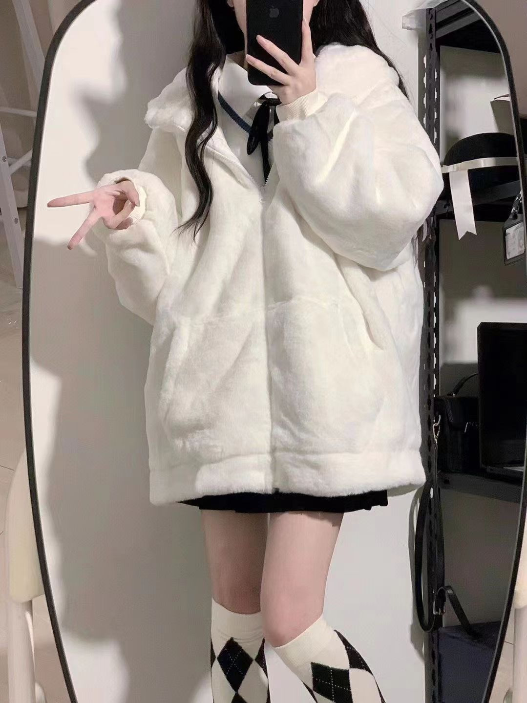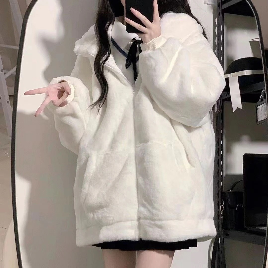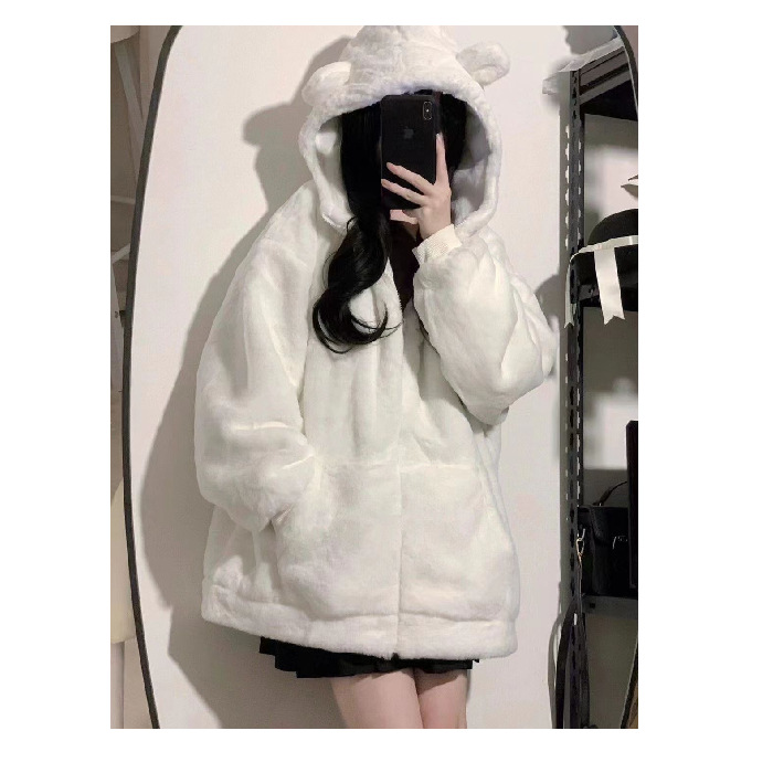 秋冬アウター ブラッシュトップス シンプル可愛いパンダボアコートパーカーカジュアルアウターレディースキャンパス風 キルティングアウター その他 アウター