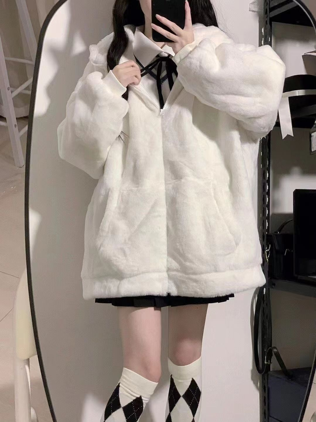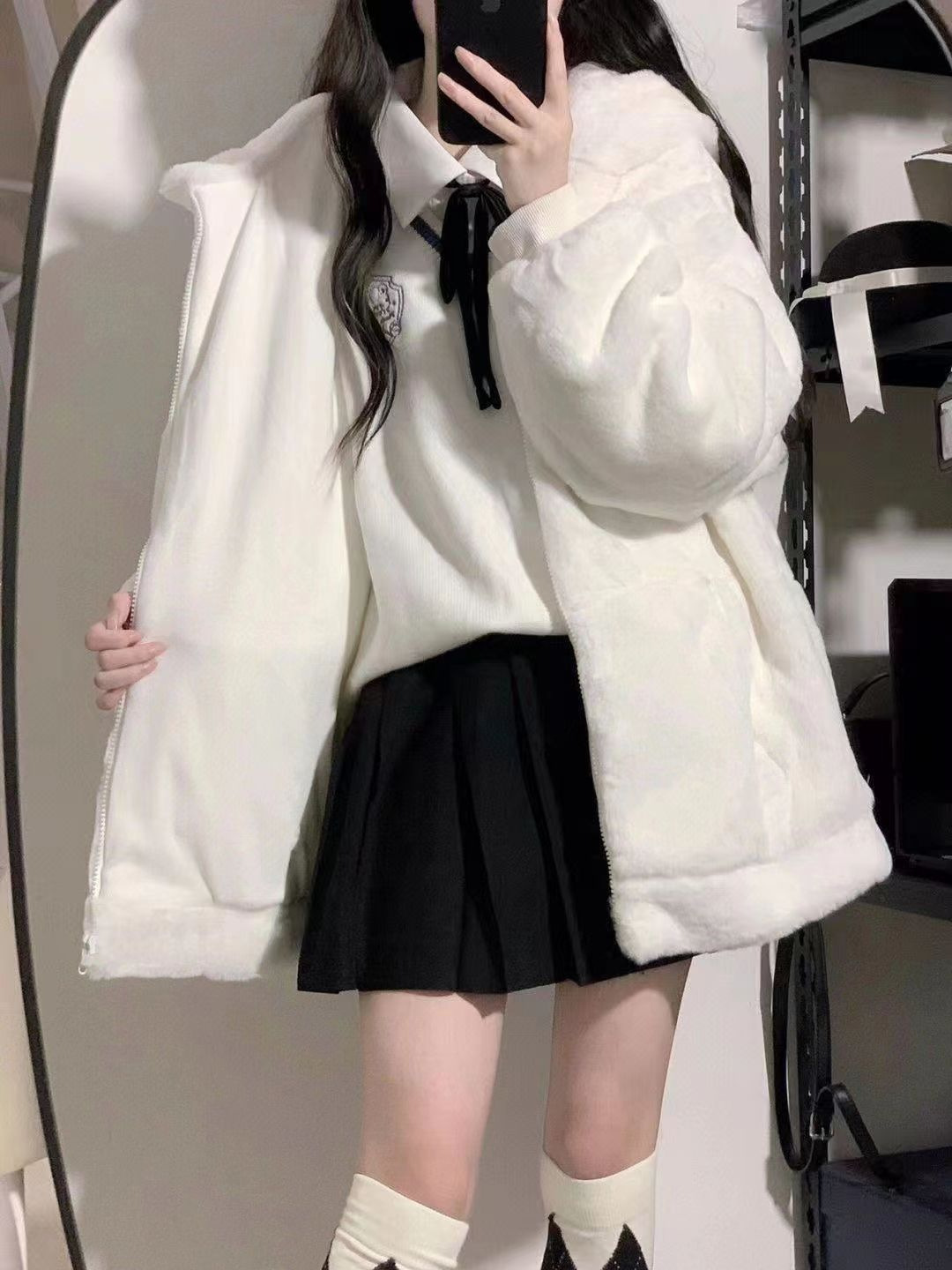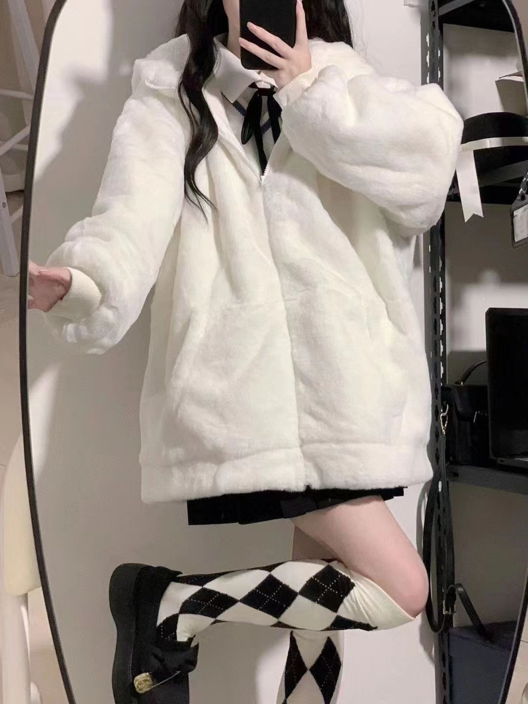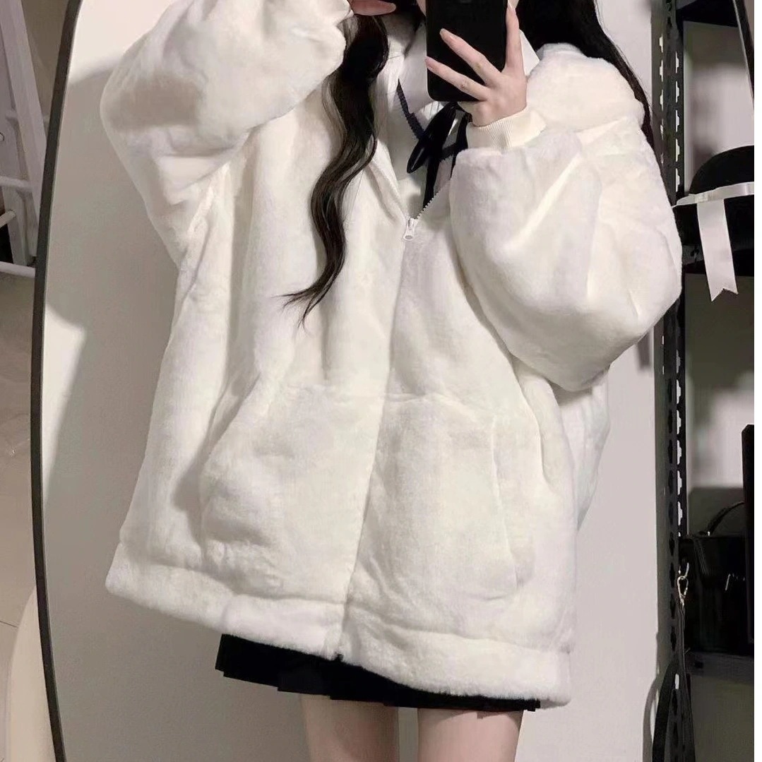 秋冬アウター ブラッシュトップス シンプル可愛いパンダボアコートパーカーカジュアルアウターレディースキャンパス風 キルティングアウター その他 アウター
