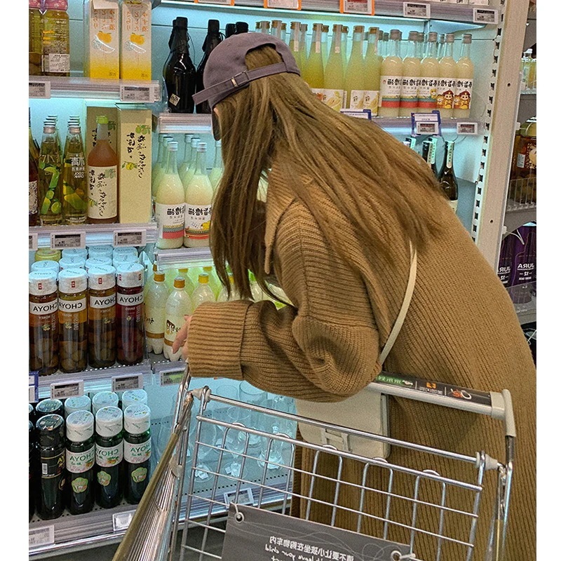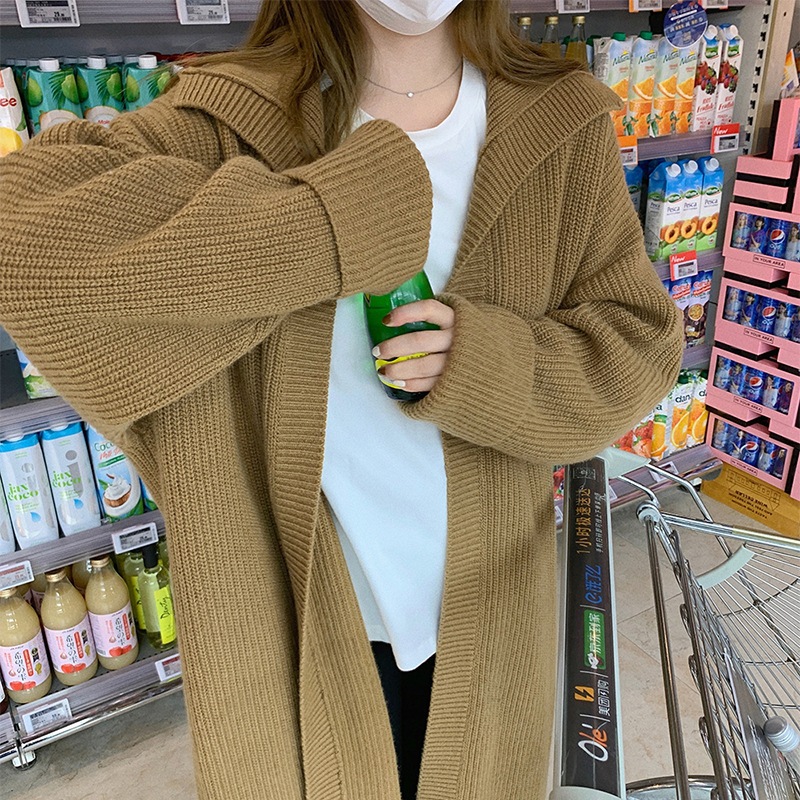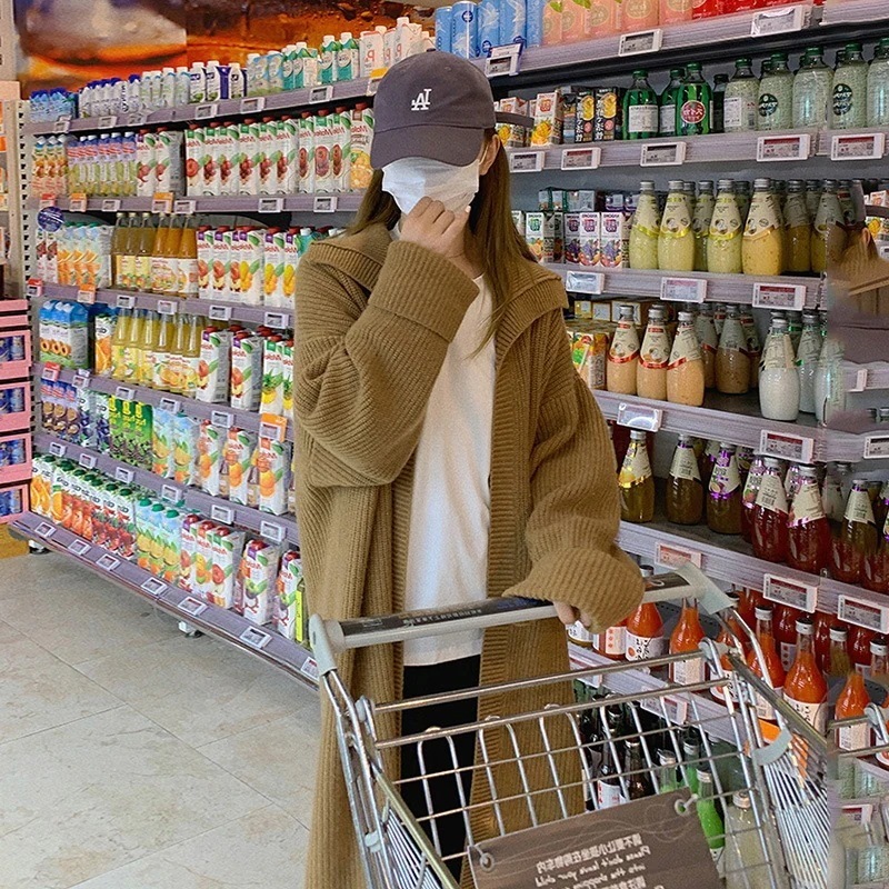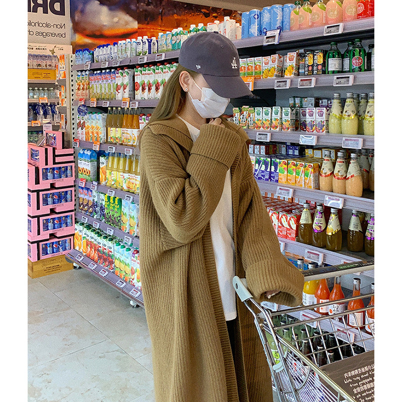 韓系レトロな開襟ミディアムコート女秋冬厚手ゆったりニットカーディガン気質だるい風大きなセーター トップス ジャケット その他 アウター