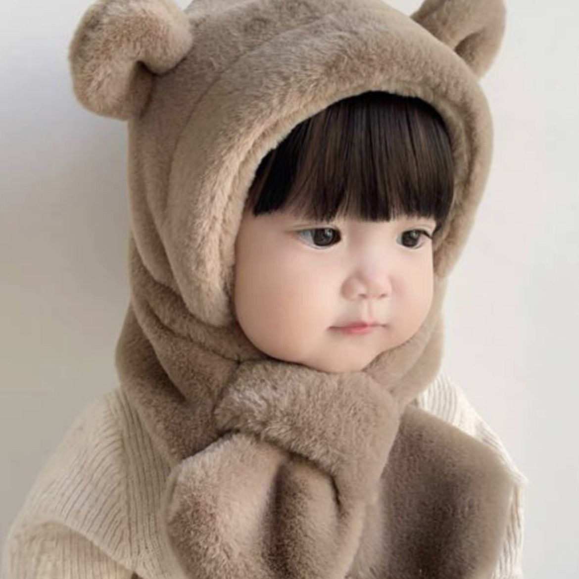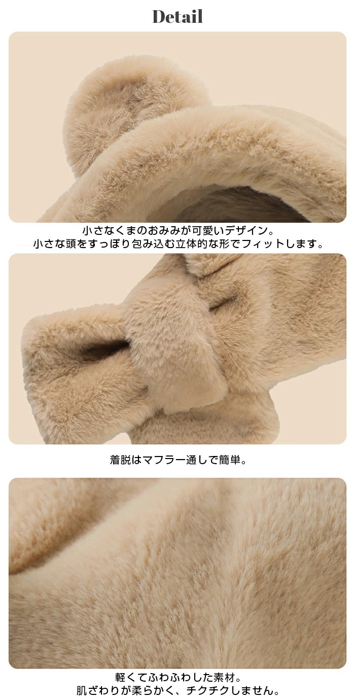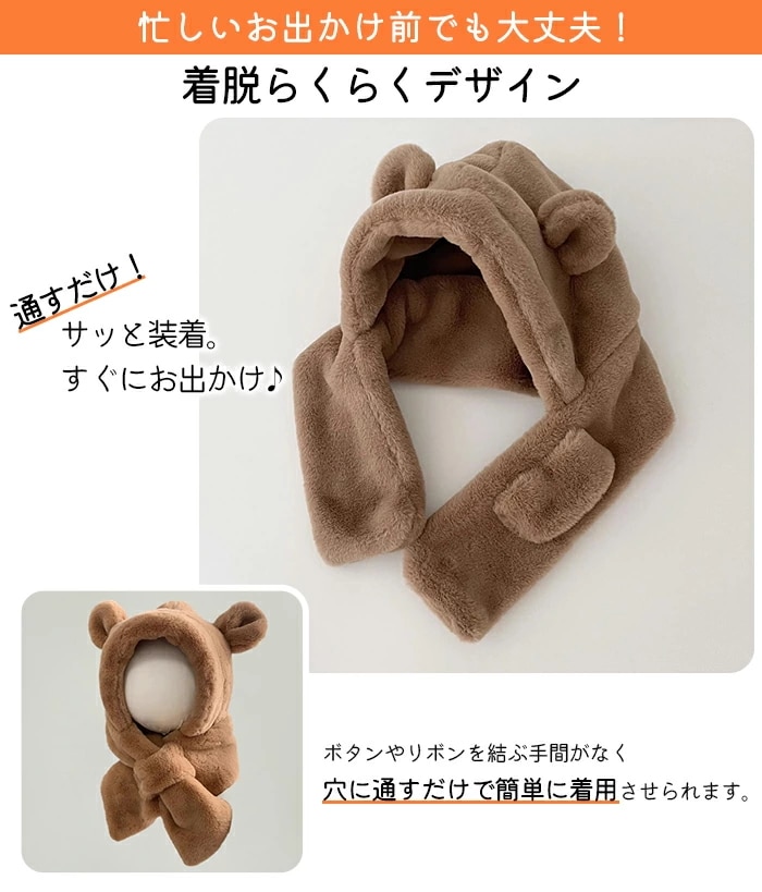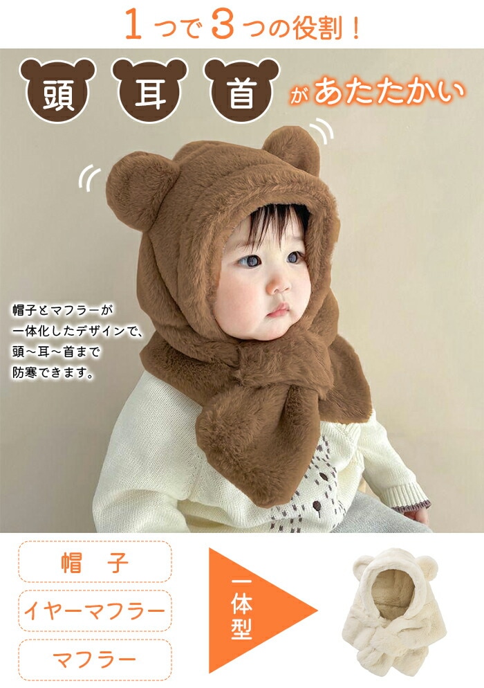帽子 マフラー キッズ 一体 ベビー イヤーマフ フード ティペット 付き 冬 防寒 フードウォーマー 子供 耳付き 男の子 女の子 一体型 くま くま耳 ファー もこもこ 可愛い 保育園