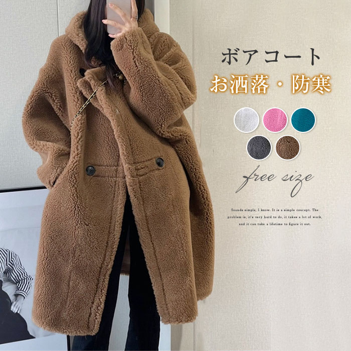 ボアコート フード付き レディース ボア コート ロングコート 冬 防寒 ファーコート ロングボアコート ウール 大人 アウター 暖か あったか 厚手 かわいい もこもこ 大きいサイズ ゆったり ムー