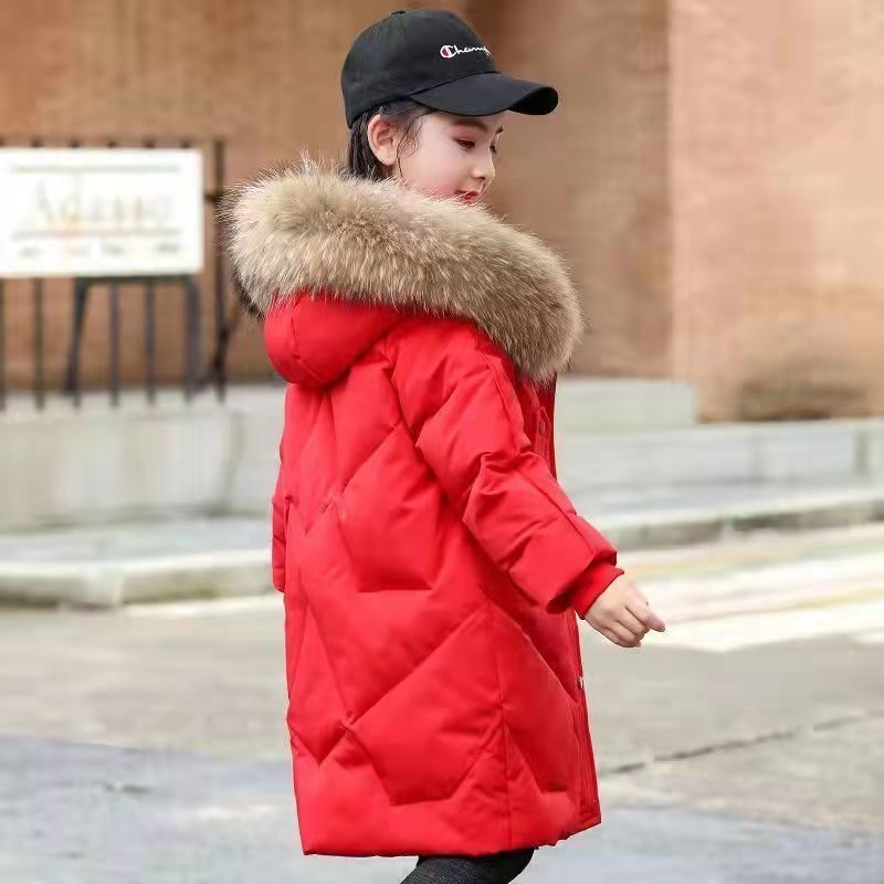 子供用中綿コート冬服ミディアム丈ダウン中綿ジャケット子供用大きいファー襟中綿服 ジャンパー コート ジャケット
