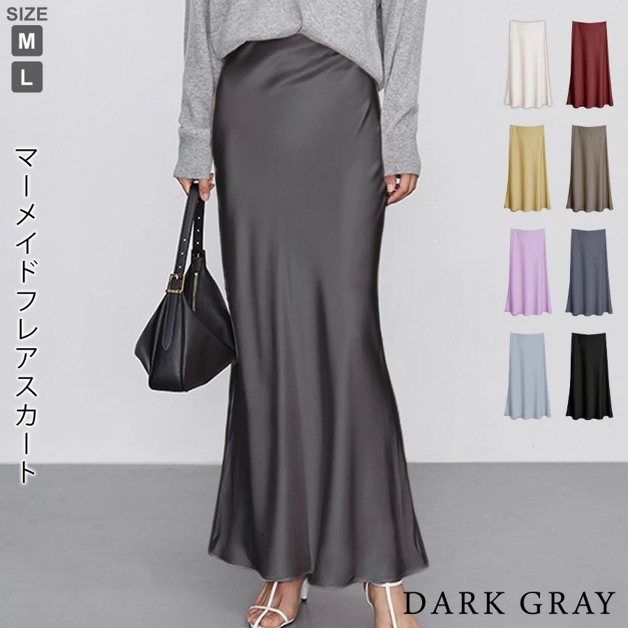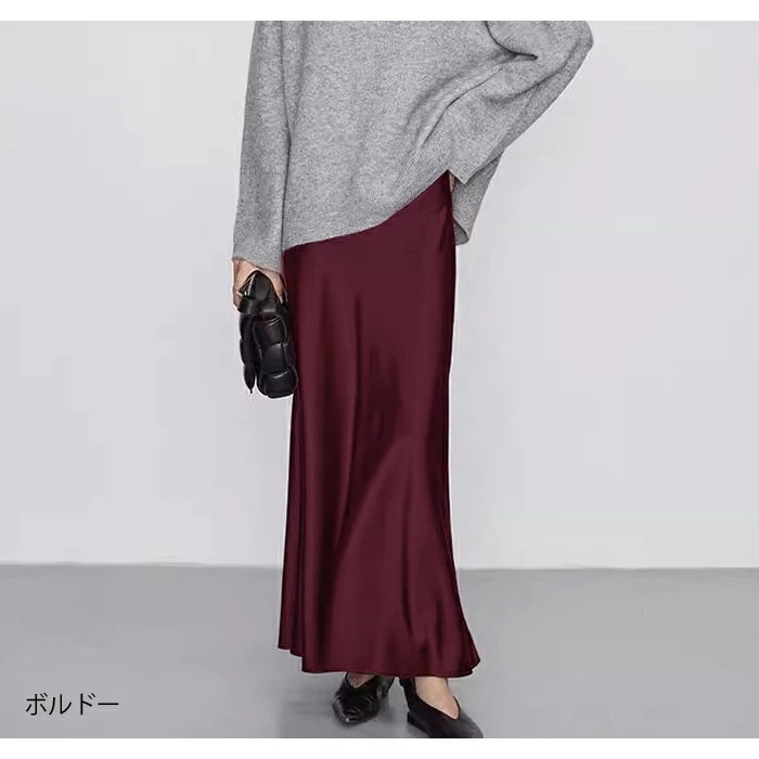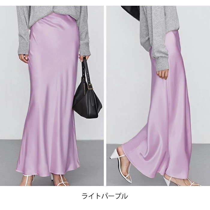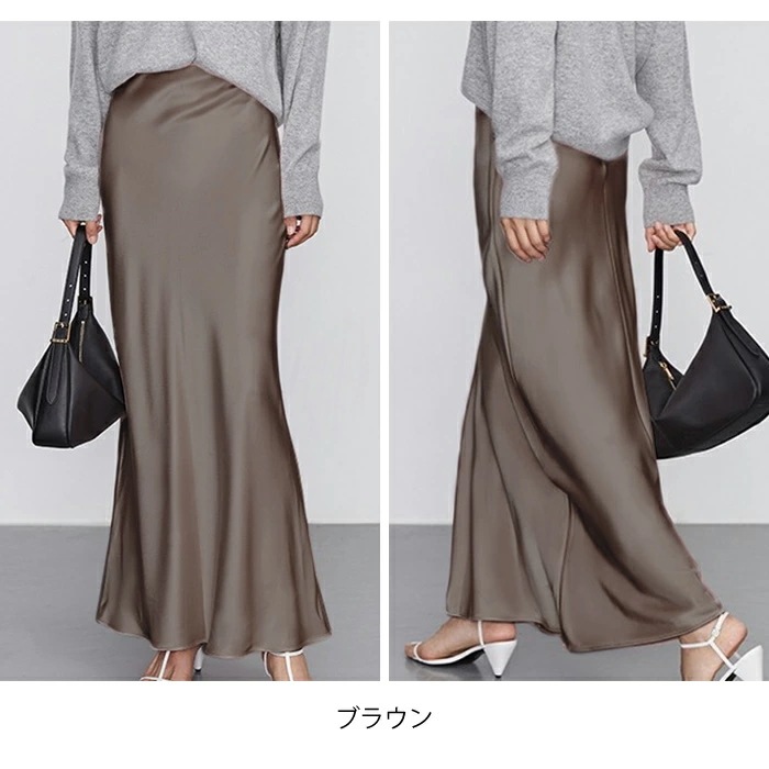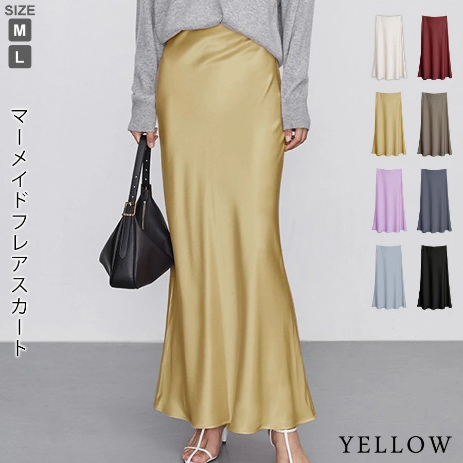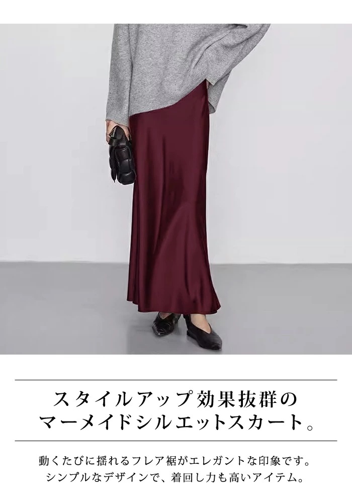 マーメイドスカート サテンスカート ロングスカート マキシ フレア マキシ タイト ロング ロング丈 マキシ丈 きれいめ 光沢感 上品 トレンド 着痩せ ウエストゴム オフィス サテンナロースカート