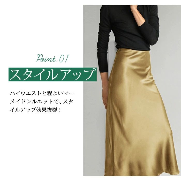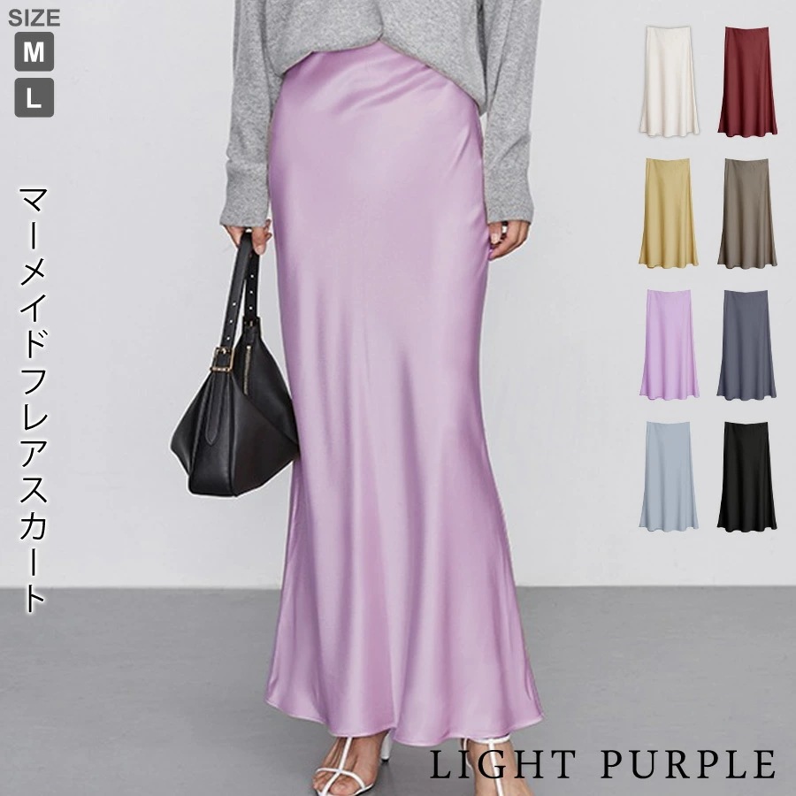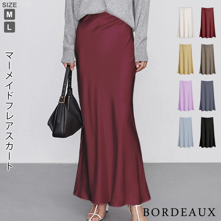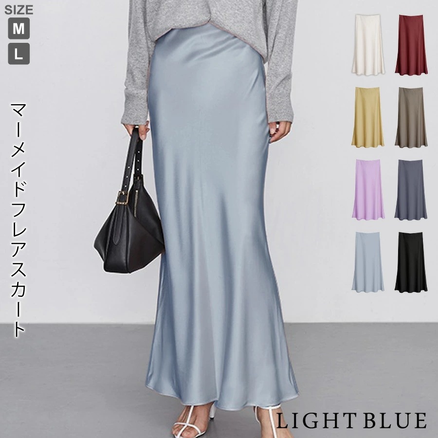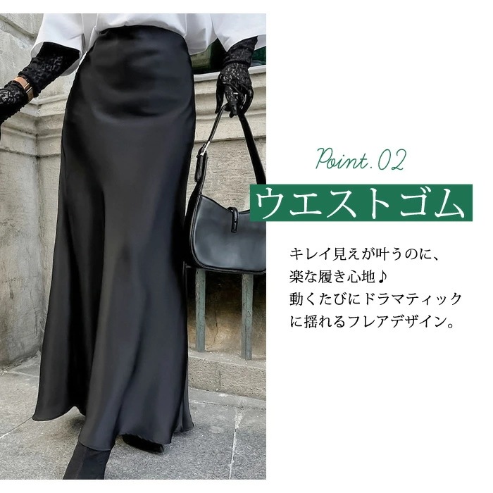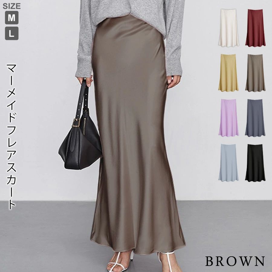 マーメイドスカート サテンスカート ロングスカート マキシ フレア マキシ タイト ロング ロング丈 マキシ丈 きれいめ 光沢感 上品 トレンド 着痩せ ウエストゴム オフィス サテンナロースカート
