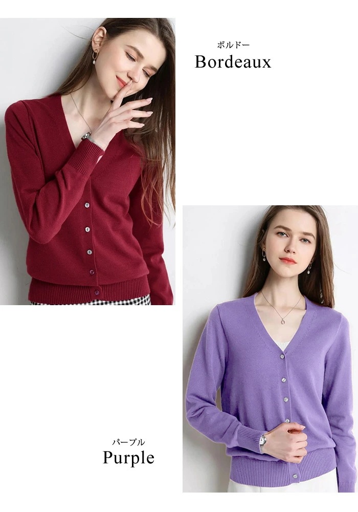 カーディガン レディース 秋 冬 秋冬 黒 白 ニット Vネック カーデ ニットカーディガン ブラック ホワイト グリーン グレー ピンク ベージュ パープル レッド ボルドー テラコッタ キャメル