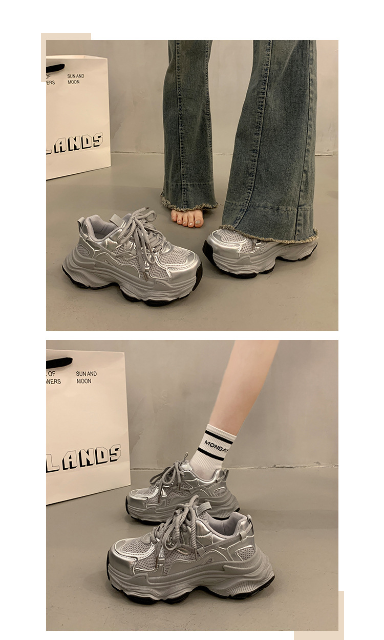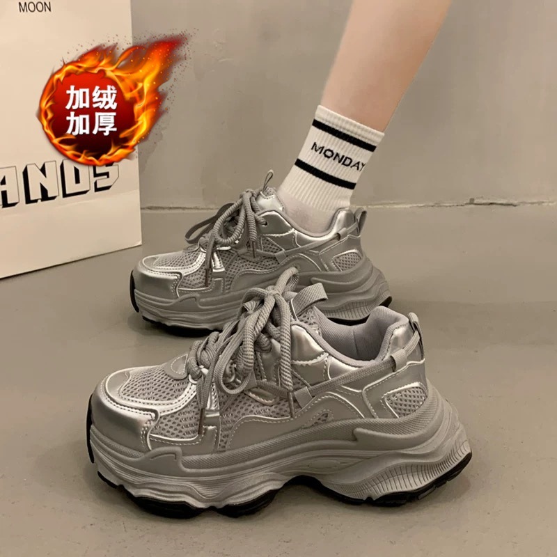 スニーカー シルバーパパシューズレディース2024秋冬新作厚底パッド入り暖かいスポーツシューズ その他 スポーツシューズ