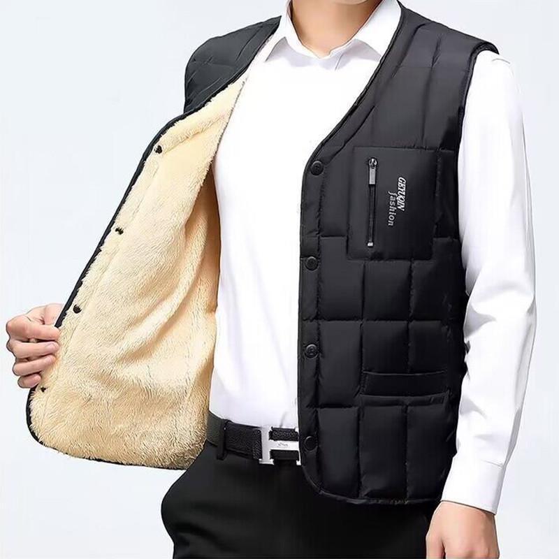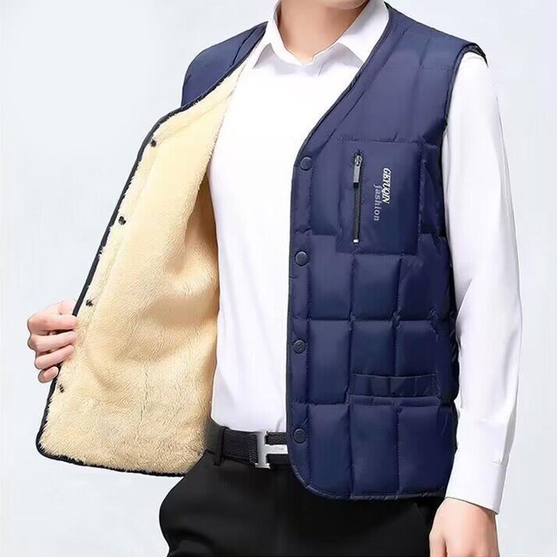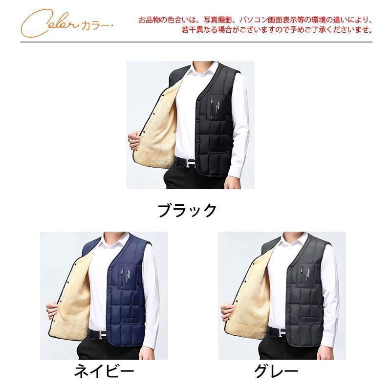ダウンベスト メンズ ライトダウン キルティング ノーカラー 裏ボア ライナー Vネック 袖なし インナーダウン 軽量 暖か 着痩 防風 父 ギフト
