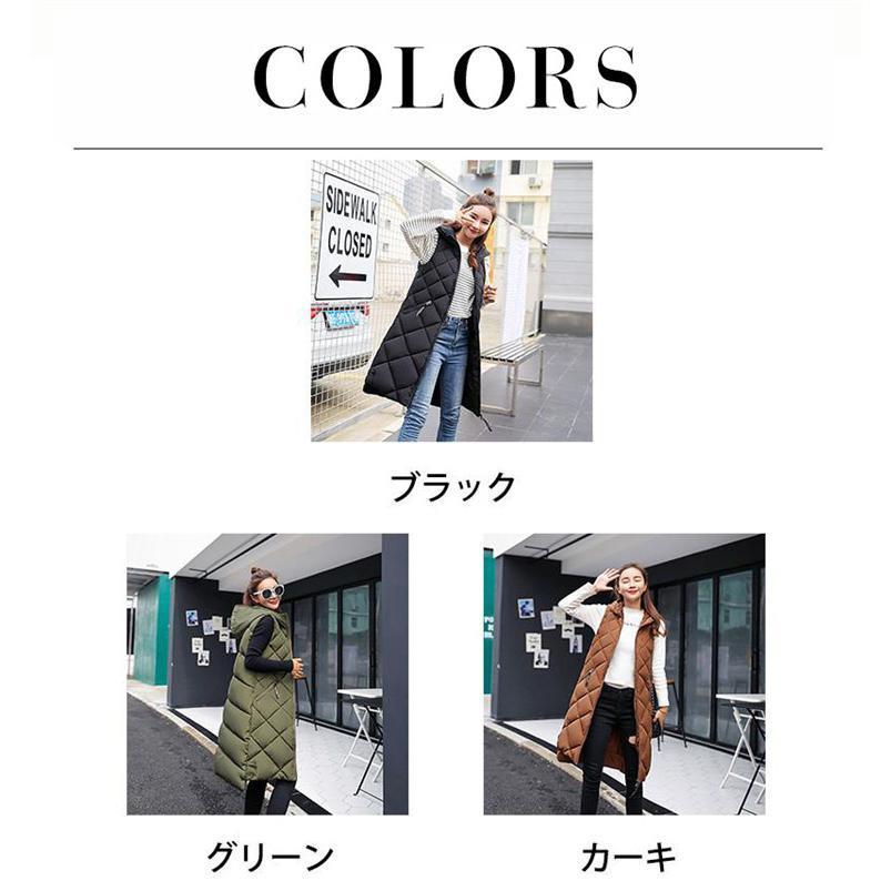 中綿ベスト レディース ロング丈 フード付き ノースリーブ ダウンベスト 無地 ジレ 前開き カジュアル ゆったり フォマール プレゼント ベスト