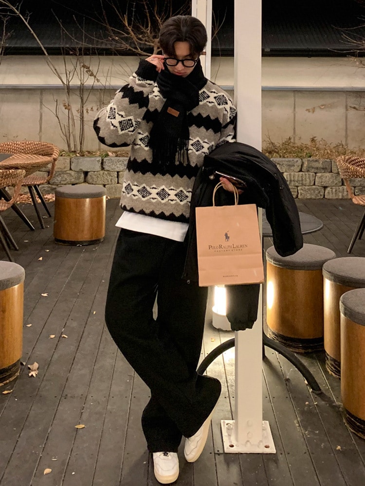 マッスル センス ストレート カジュアル パンツ 男性 冬 とろみルーズパンツ ワイドドラッグパンツのトレンドの韓国版 デニム ジーンズ