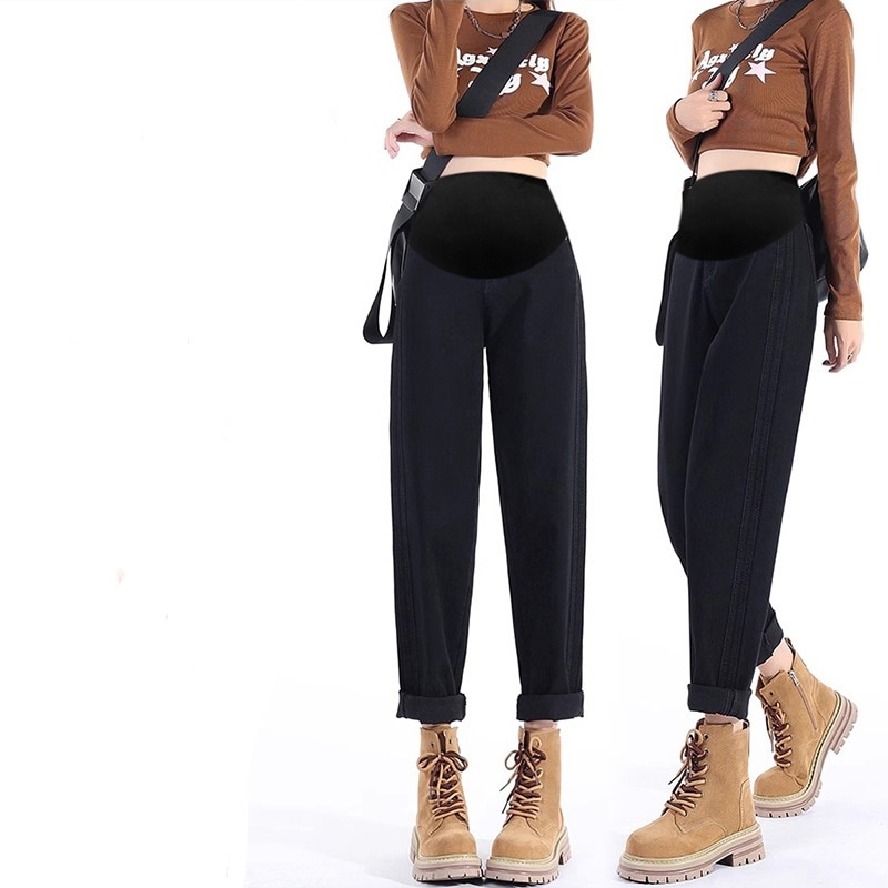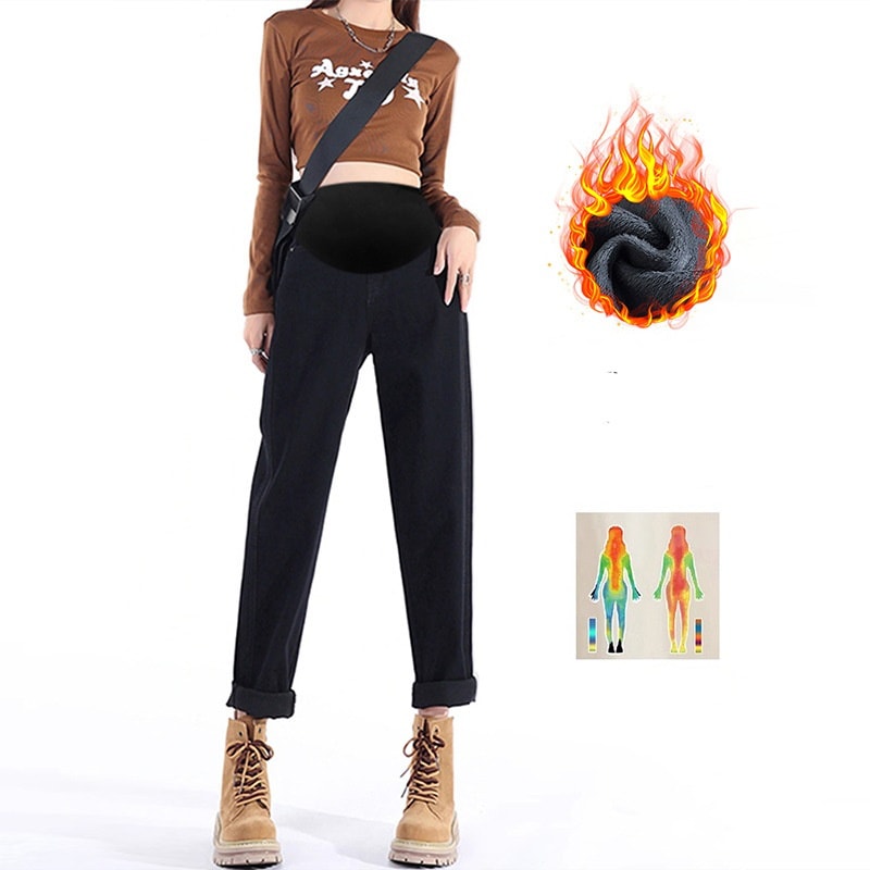 マタニティジーンズ 冬 ブラックジーンズロングパンツ マタニティジーンズ 妊婦服 マタニティパンツゆったり カジュアルパンツ マタニティパンツ