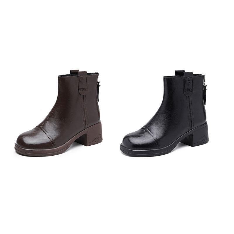 冬の汎用性の高いレトロな革のマーティンブーツ女性スリム厚底チェルシーブーツラウンドつま先ファッション低 シリンダーブーツ ショート ミドルブーツ