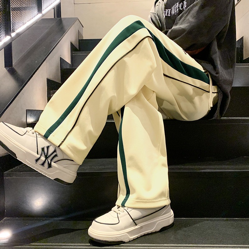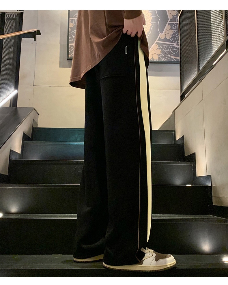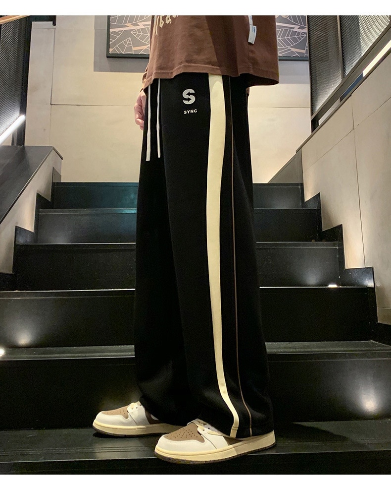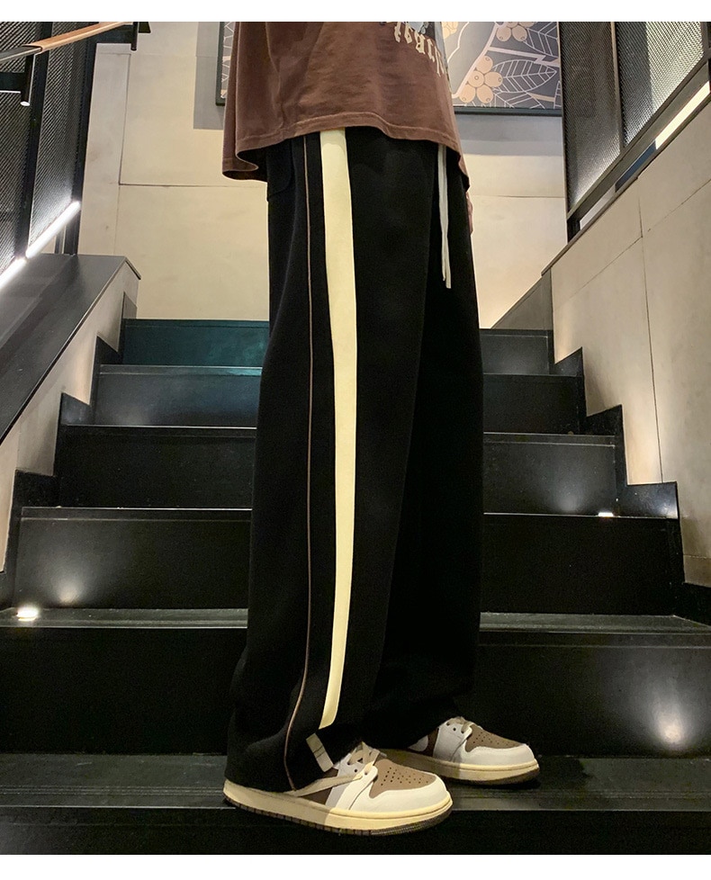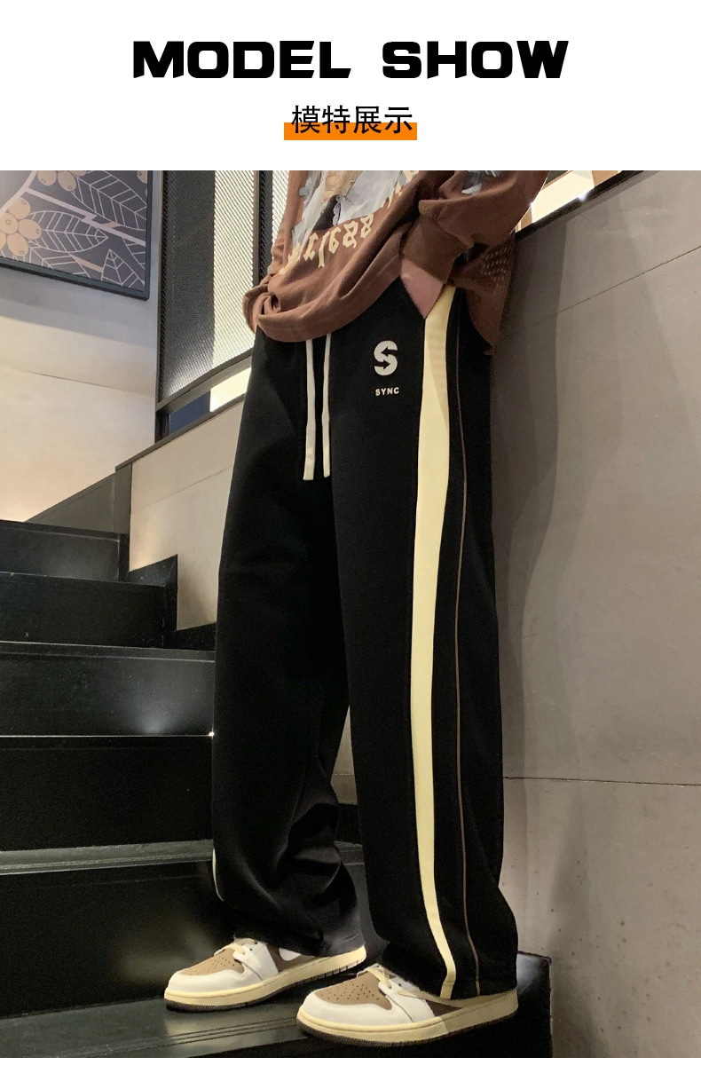 秋と冬の新しいカジュアルなズボンの男性と女性の緩いストレートズボンのトレンドの同じ韓国語版とサイドストライプ汎用性の高い長ズボン男性 ロングパンツ