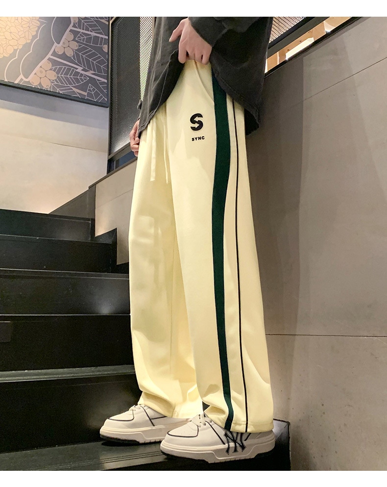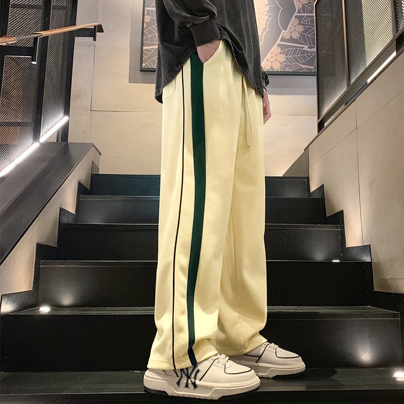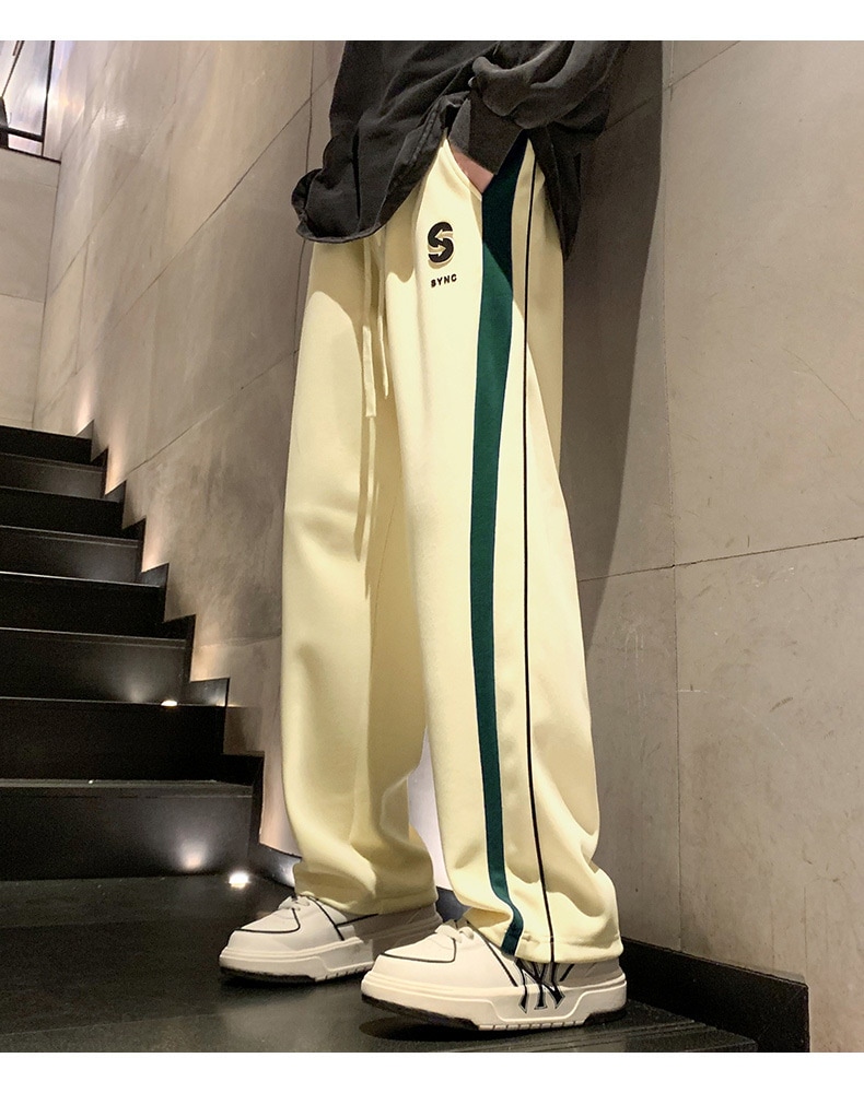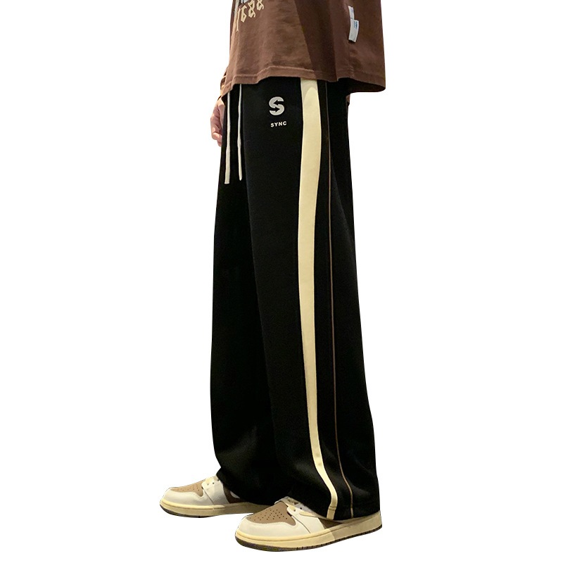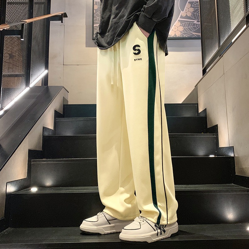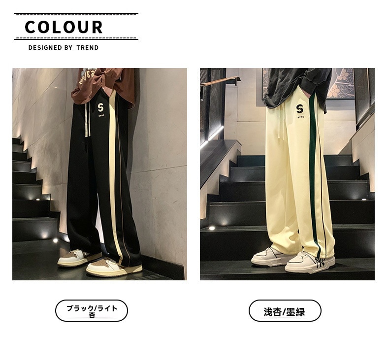 秋と冬の新しいカジュアルなズボンの男性と女性の緩いストレートズボンのトレンドの同じ韓国語版とサイドストライプ汎用性の高い長ズボン男性 ロングパンツ