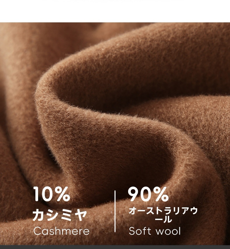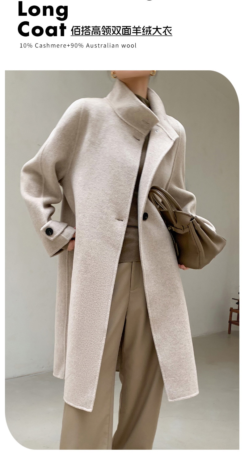 無地両面ツイードカシミヤコート女性秋冬新作ウール襟膝ルーズツイードジャケットロング部分 ファー 毛皮アウター