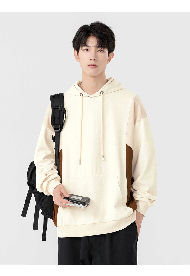 カジュアル フード付きトレーナー メンズ アメカジ 秋新作 カラーブロッキング スプライシング デザイン ゆったり 長袖 トップス 紳士服 フード付き
