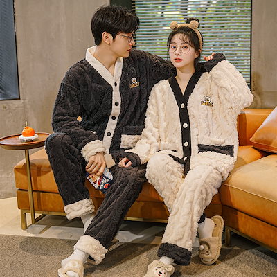 ペア パジャマ もこもこ 冬 上下 セット ペア パジャマ もこもこ カップル パジャマ 秋冬 カップル ペア ルームウェア モコモコ 柔らかい 防寒着