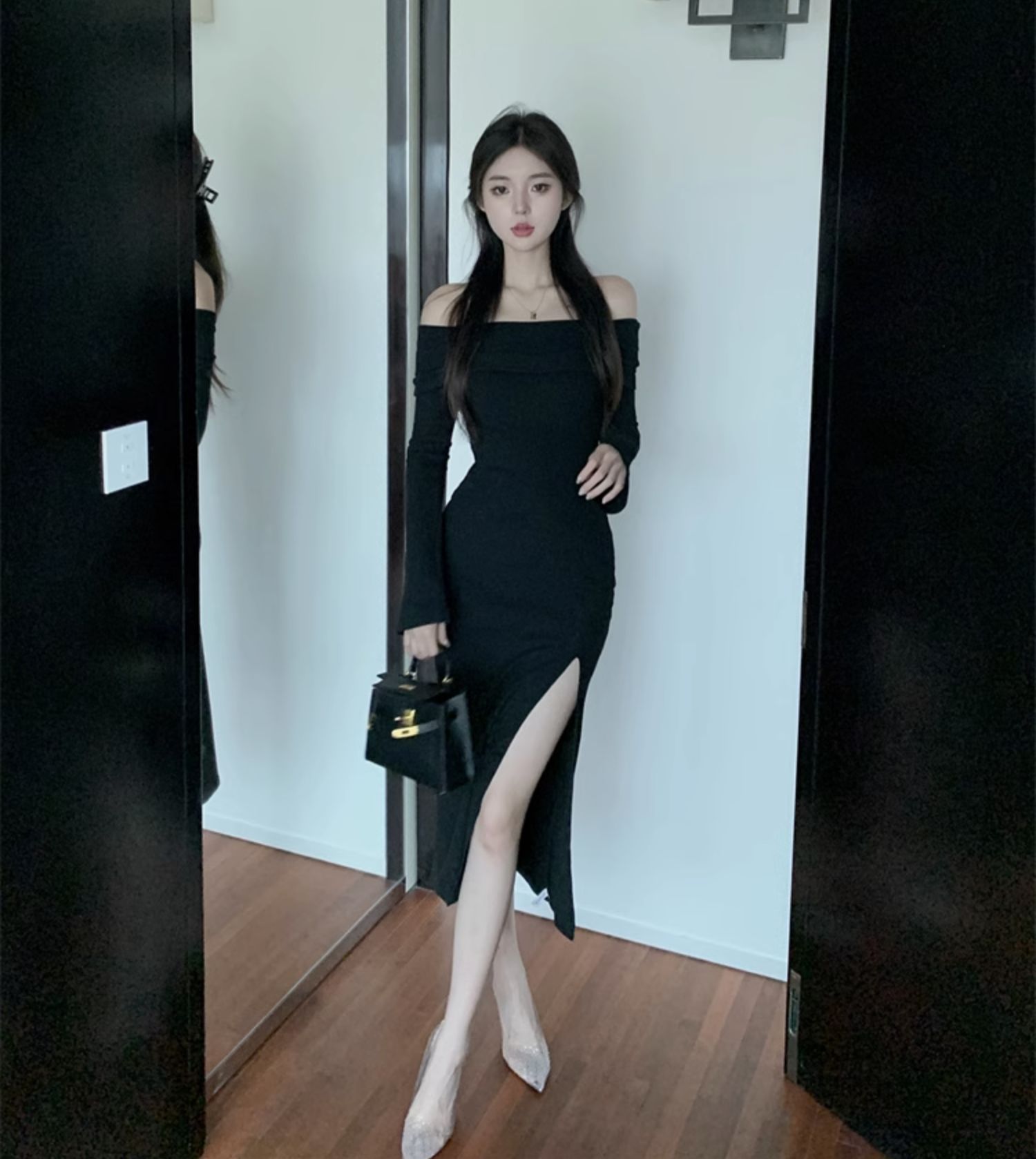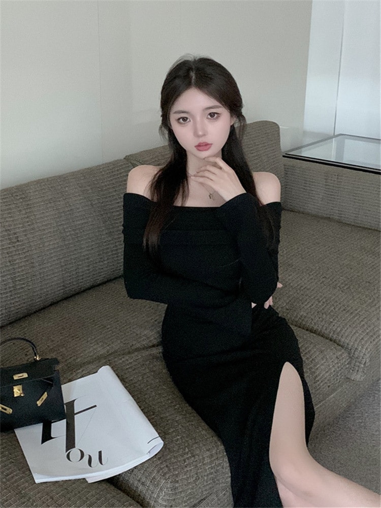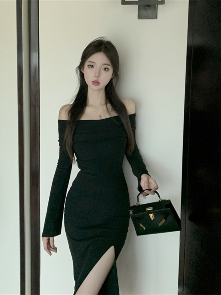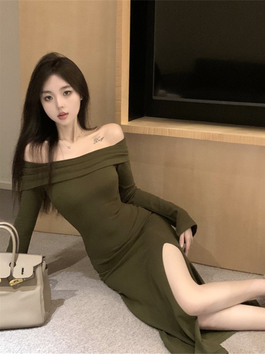 レディース フォーク本 韓国ワンピス やせて見える ロングワンピース ワンショルダー ハイウエスト ワンピース その他 ワンピース ドレス