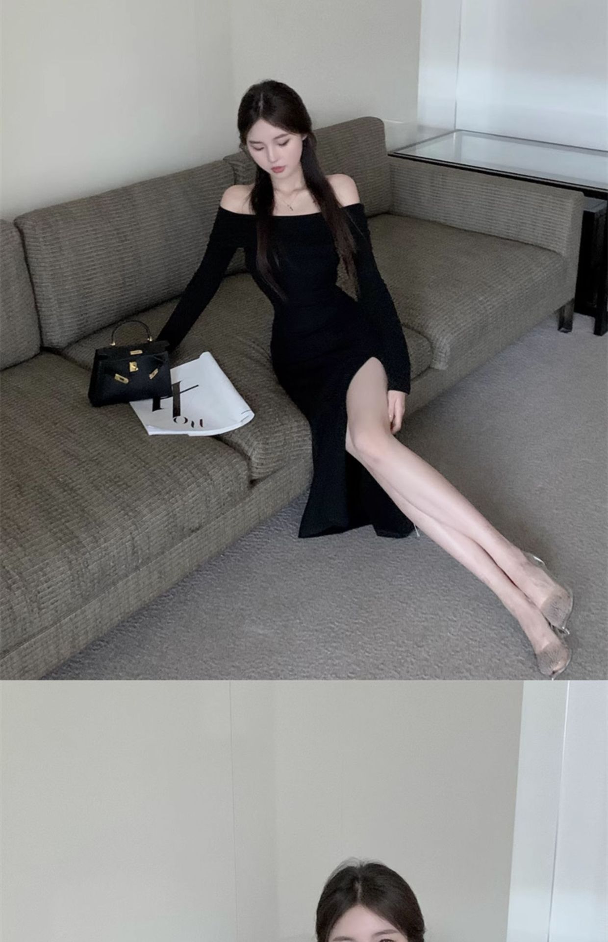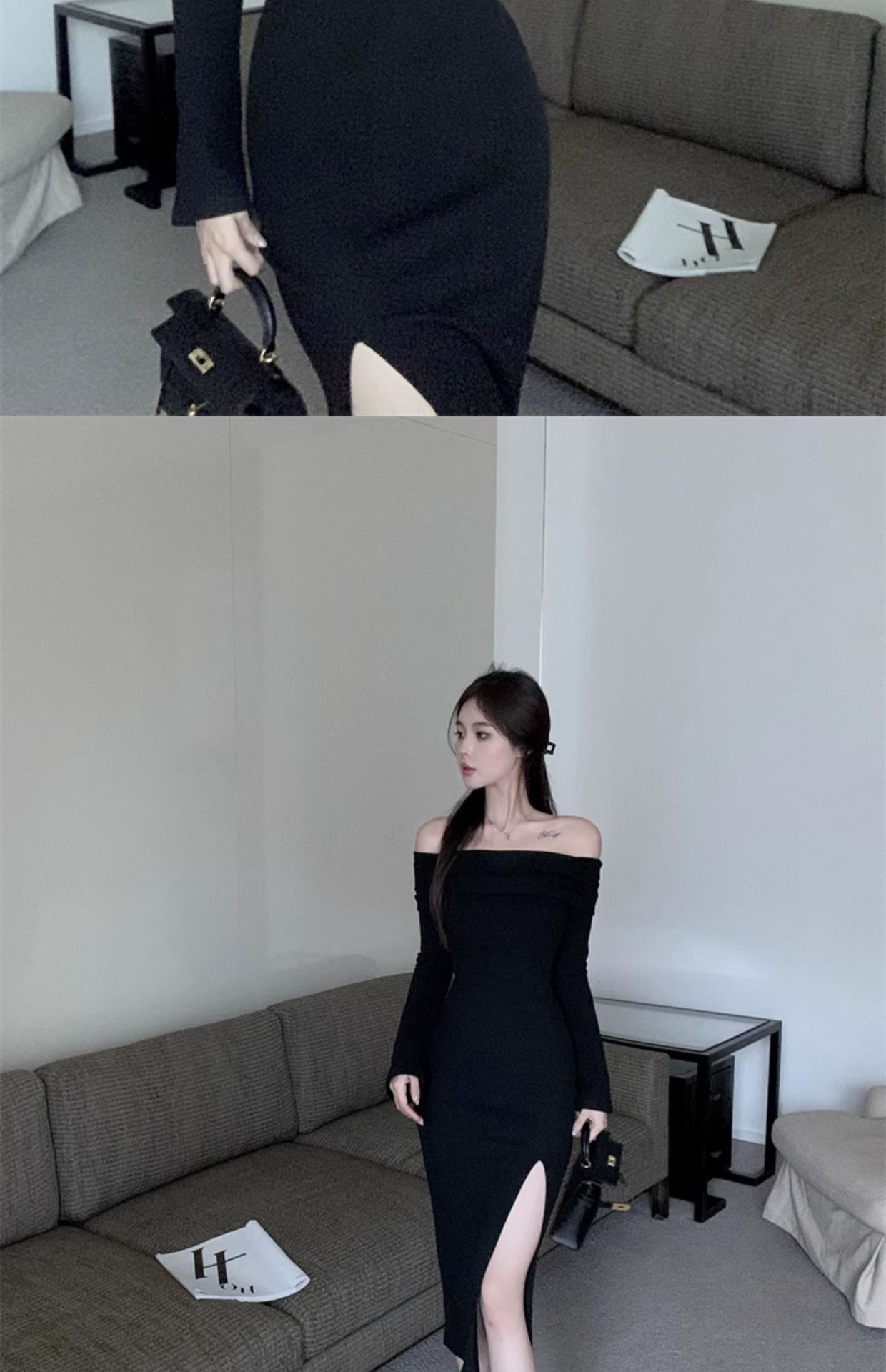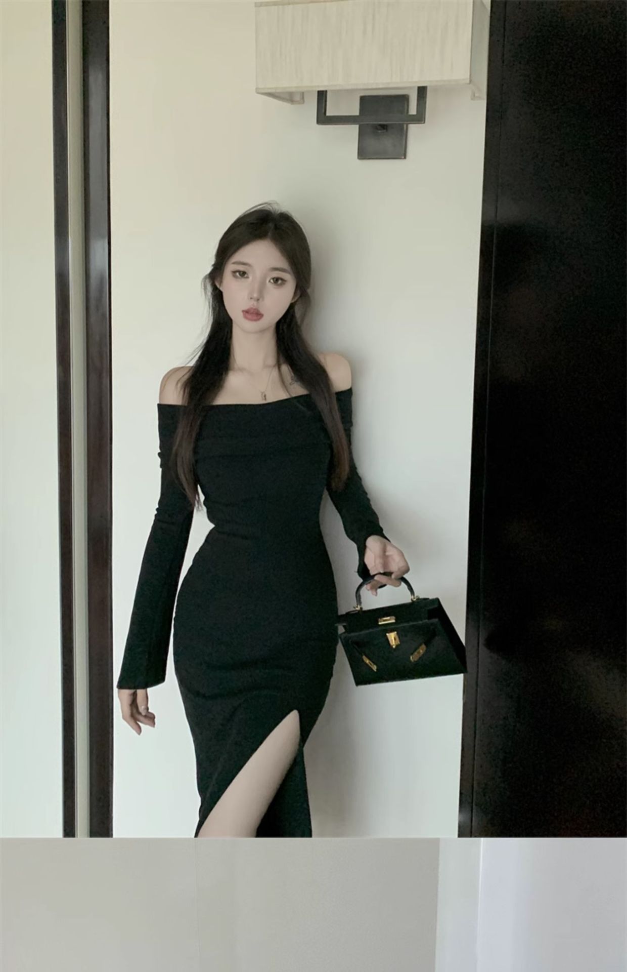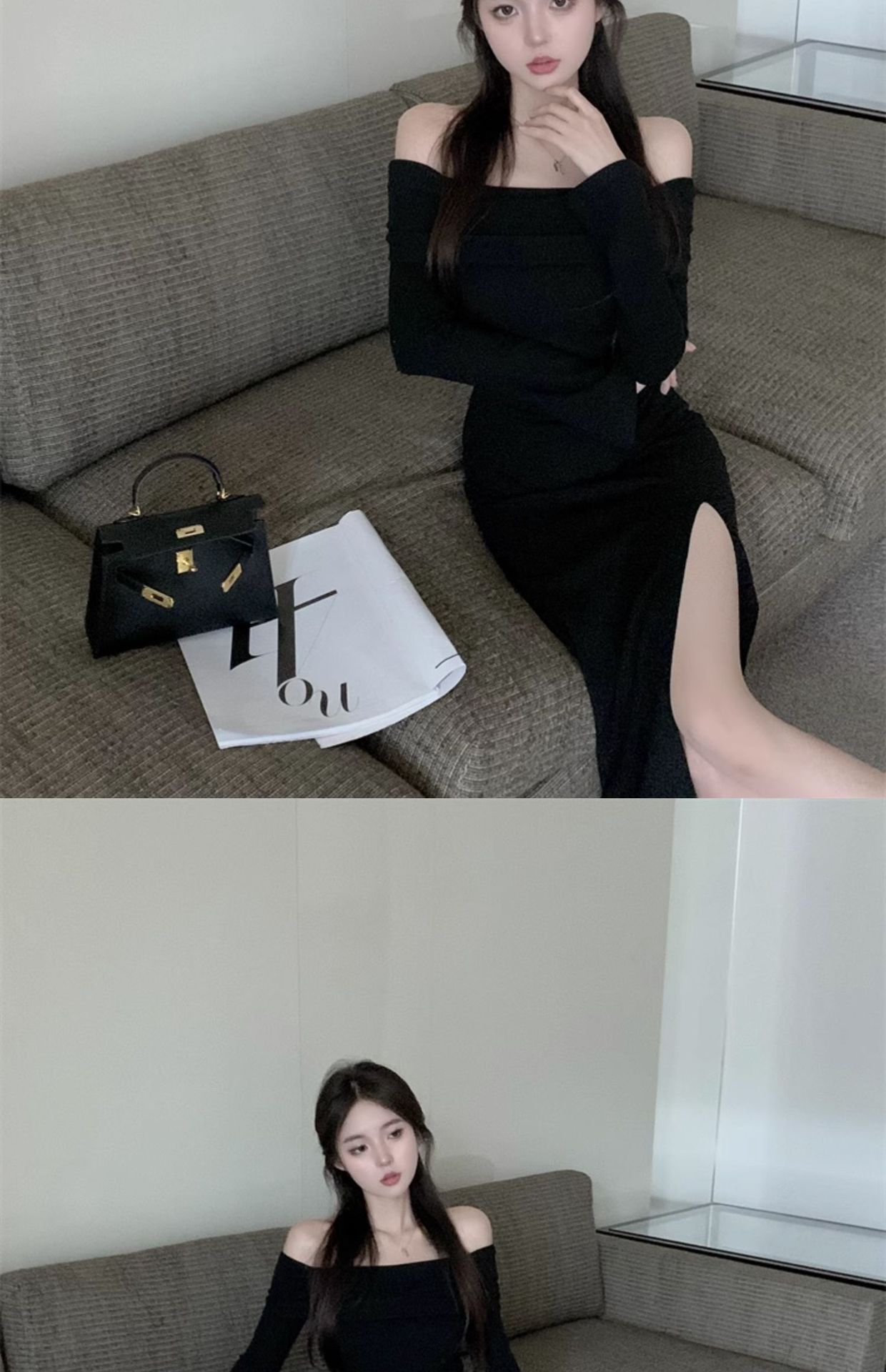 レディース フォーク本 韓国ワンピス やせて見える ロングワンピース ワンショルダー ハイウエスト ワンピース その他 ワンピース ドレス