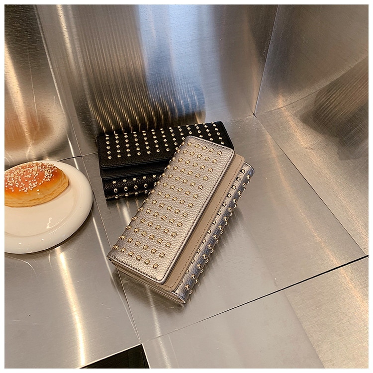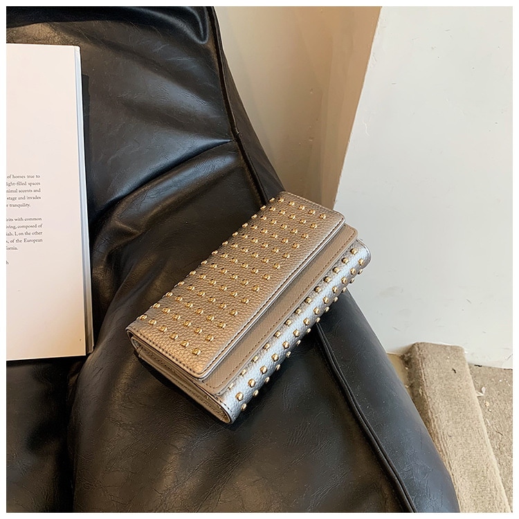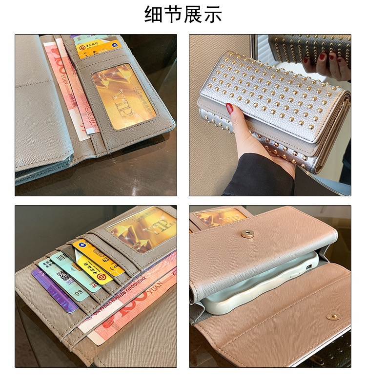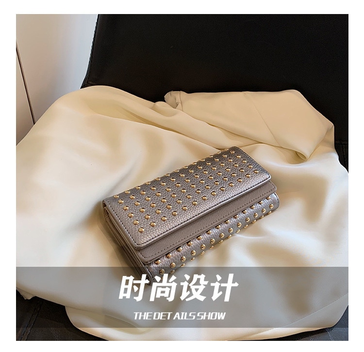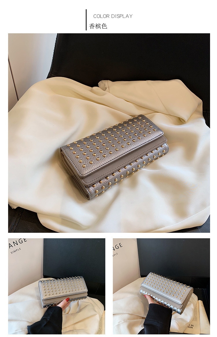 2024新型リベット三つ折りハンドバッグ女性用ハンドバッグロングジッパーゼロ財布大容量コインカードバッグ クラッチバッグ