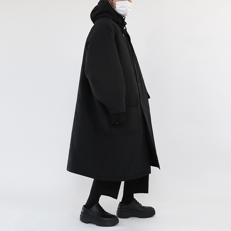 コットンメンズミディアムレングス冬厚手コートジャケットタイドインスコットン服韓国版ゆったりフード付きコットンジャケット ロングコート