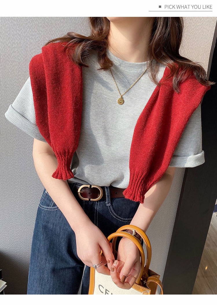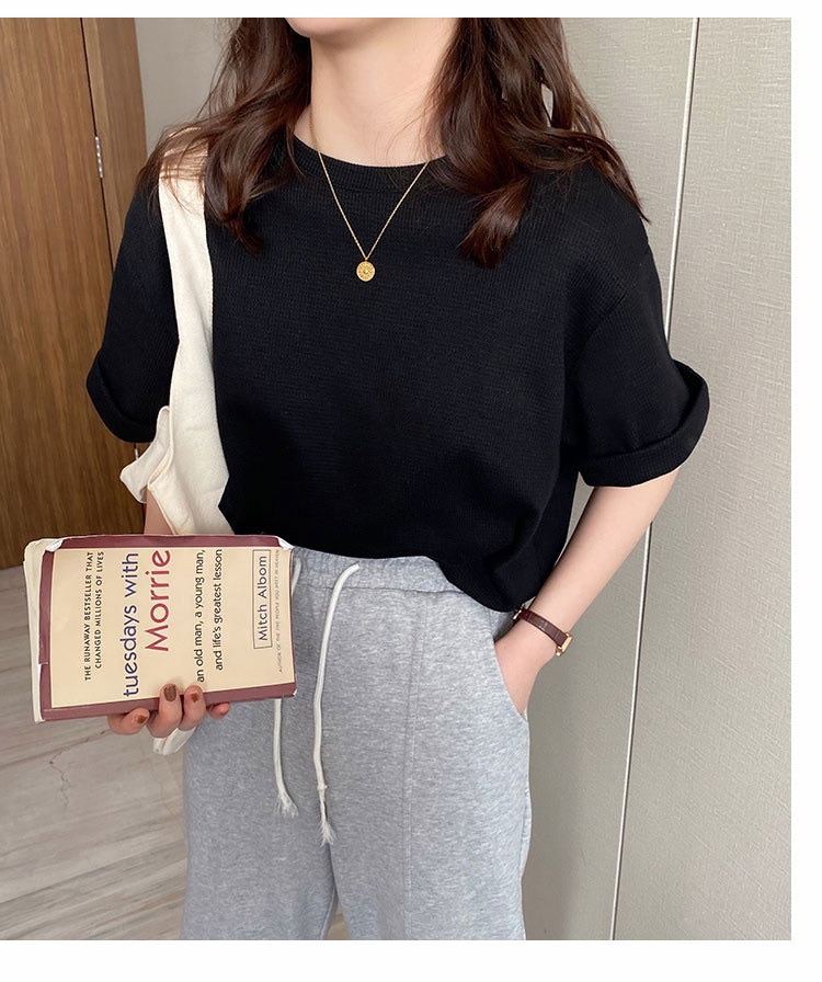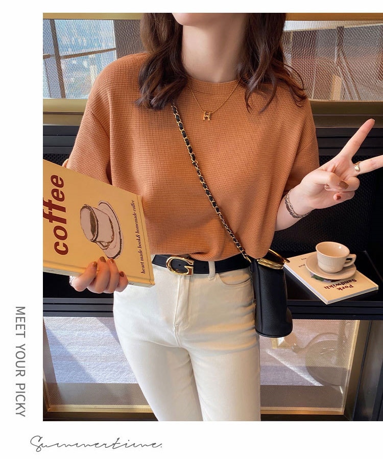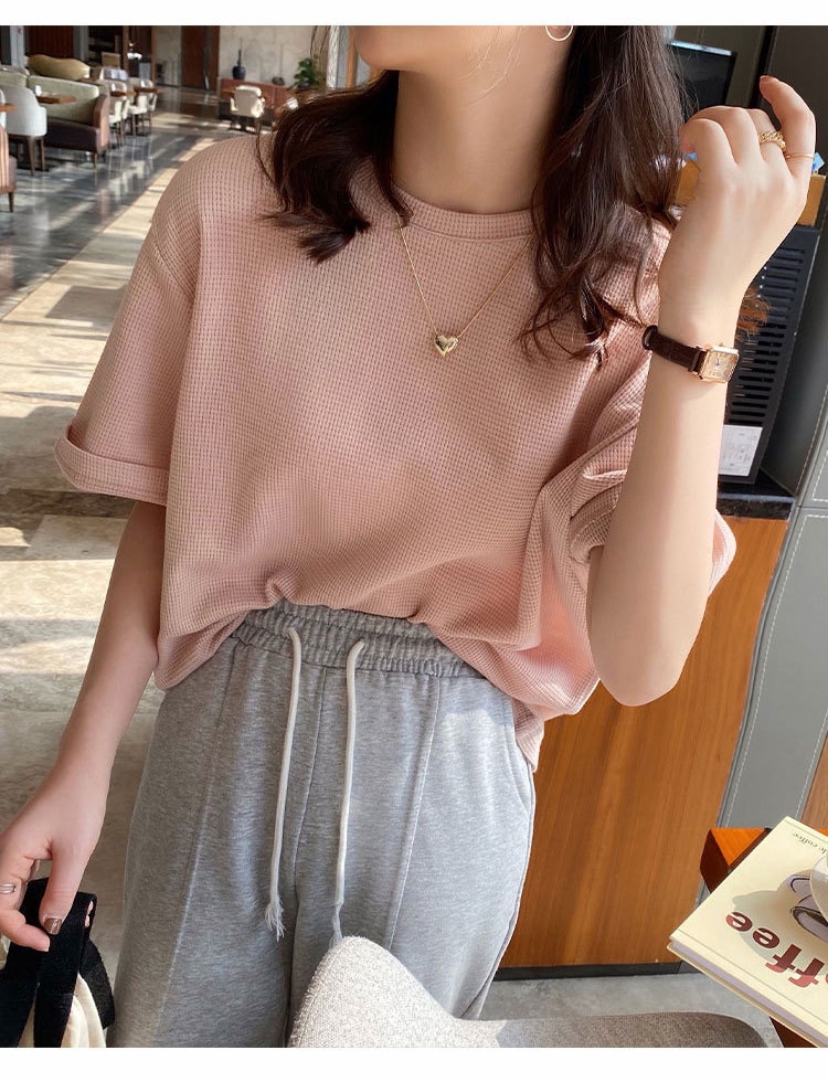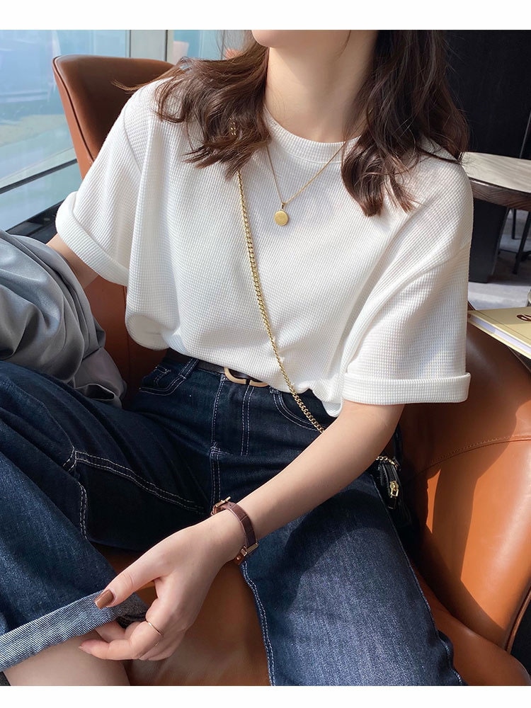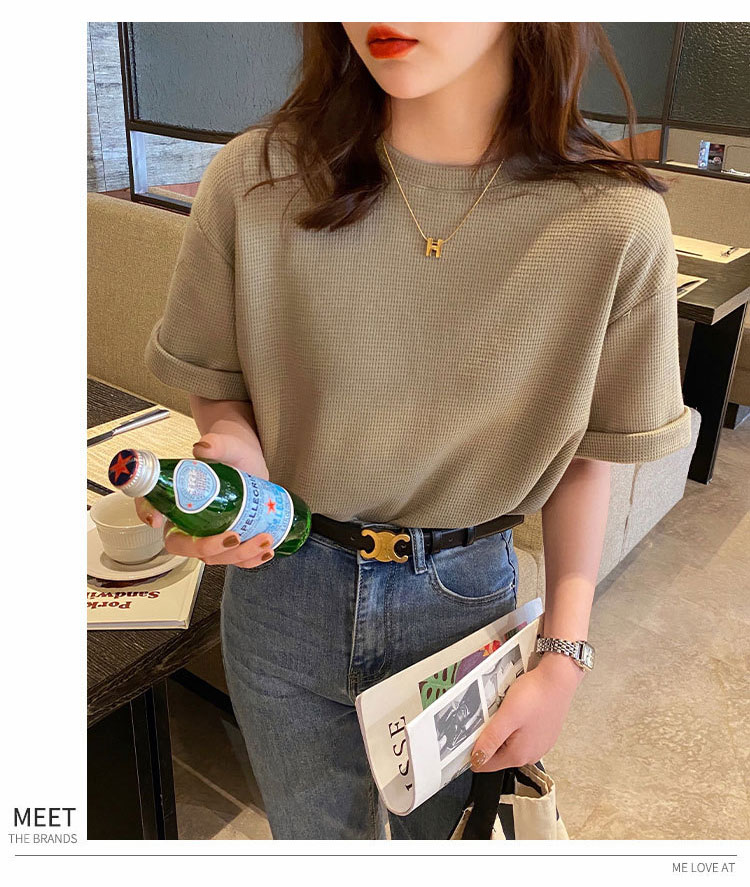 半袖女性2022年新型夏デザイン感小衆Tシャツ純色ins潮ゆったり半袖トップスワッフル Tシャツ カットソー